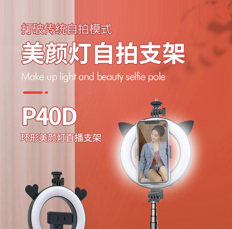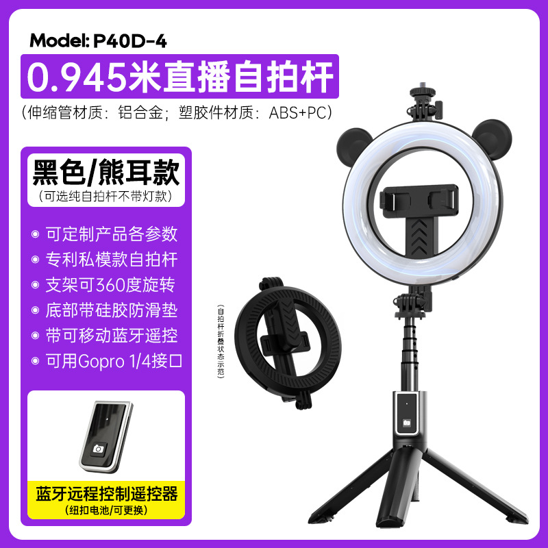 p40d-4 bear ear/beauty fill light selfie stick/black