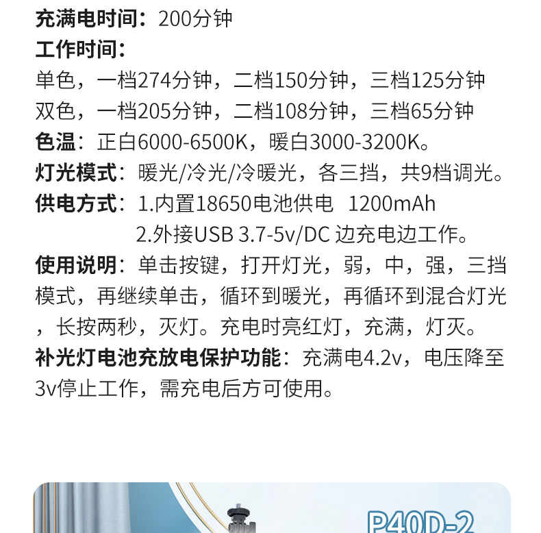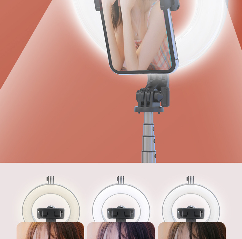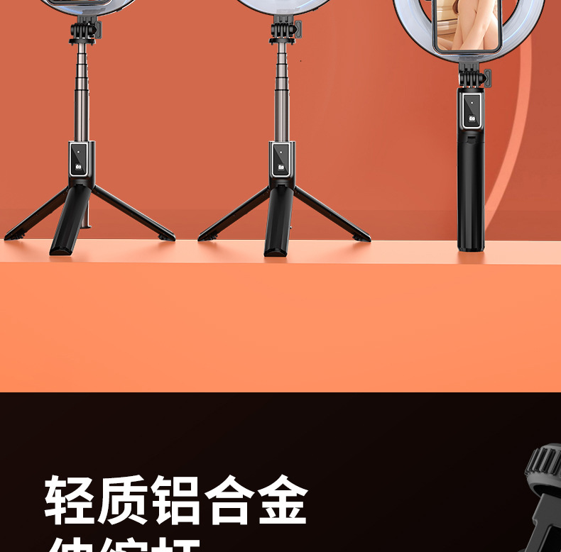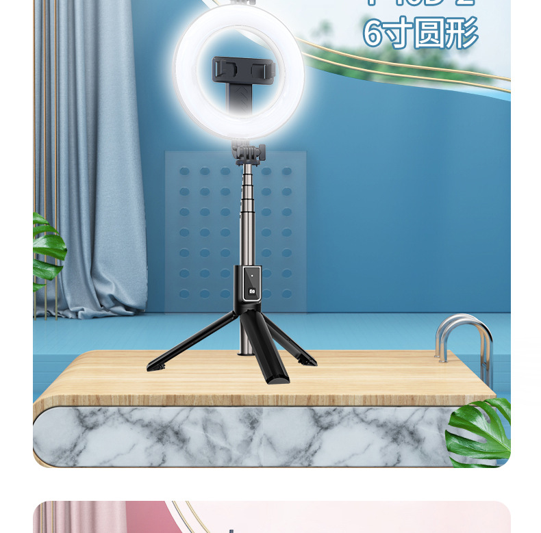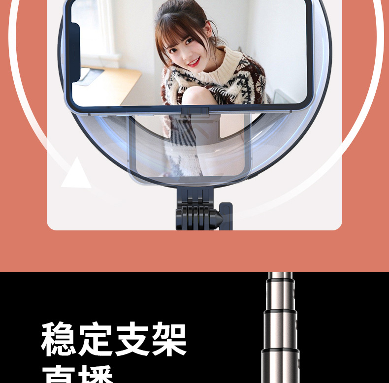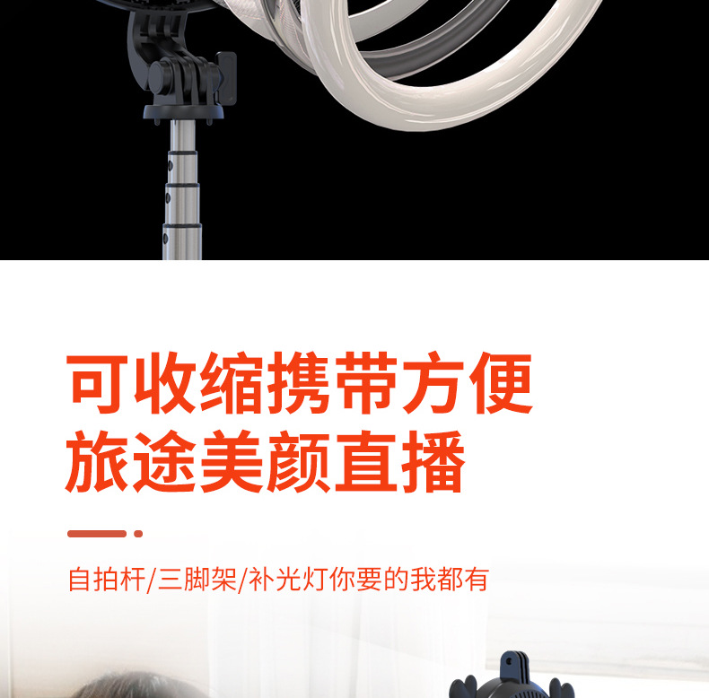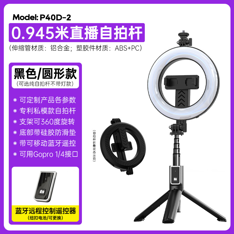 p40d-2 round/beauty fill light selfie stick/black