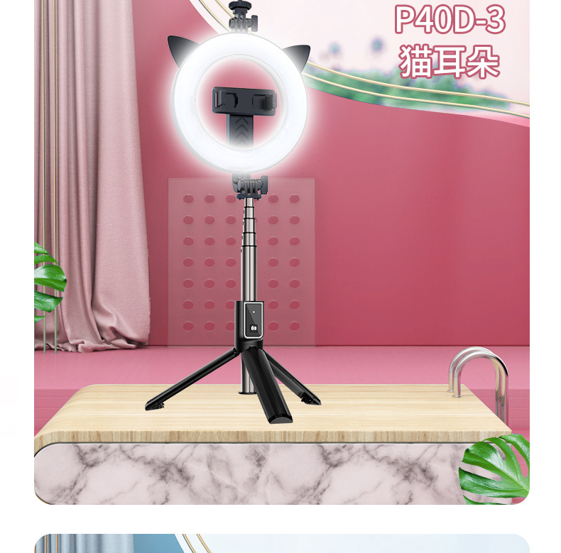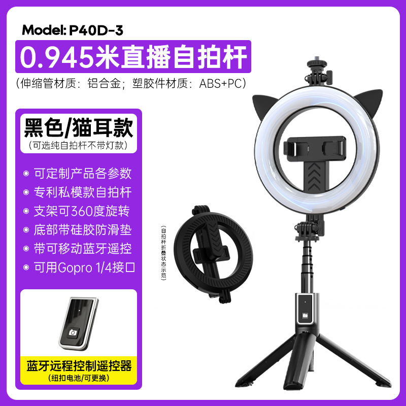 p40d-3 cat ear/beauty fill light selfie stick/black