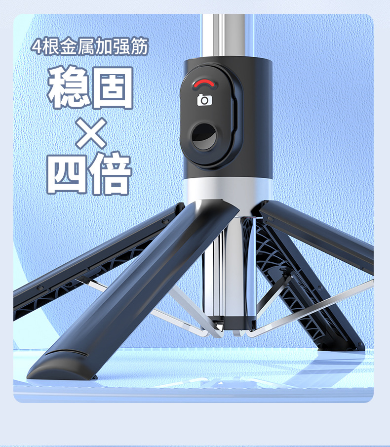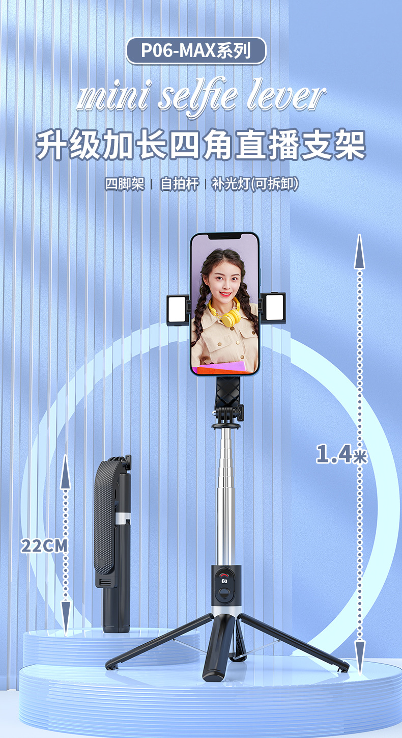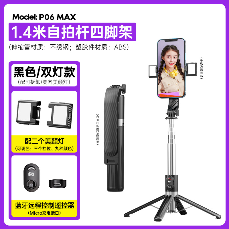 p06max-v2/stainless steel selfie stick/black/double lamp
