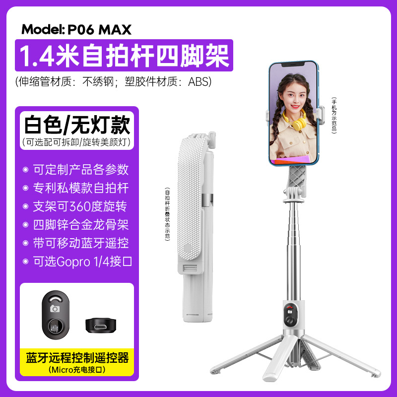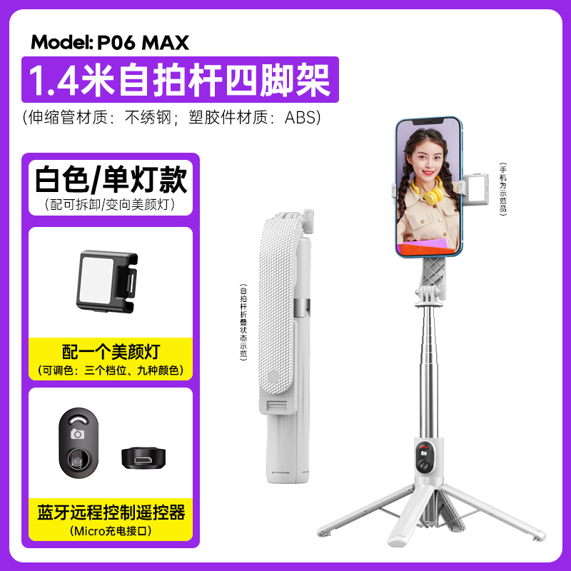 p06max-v1/stainless steel selfie stick/white/single lamp