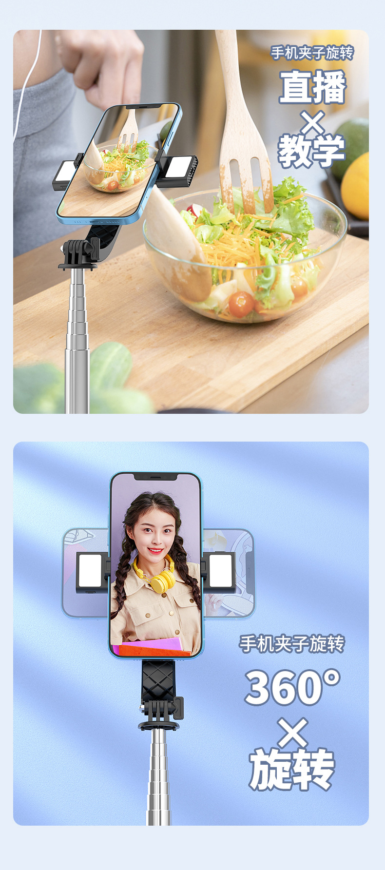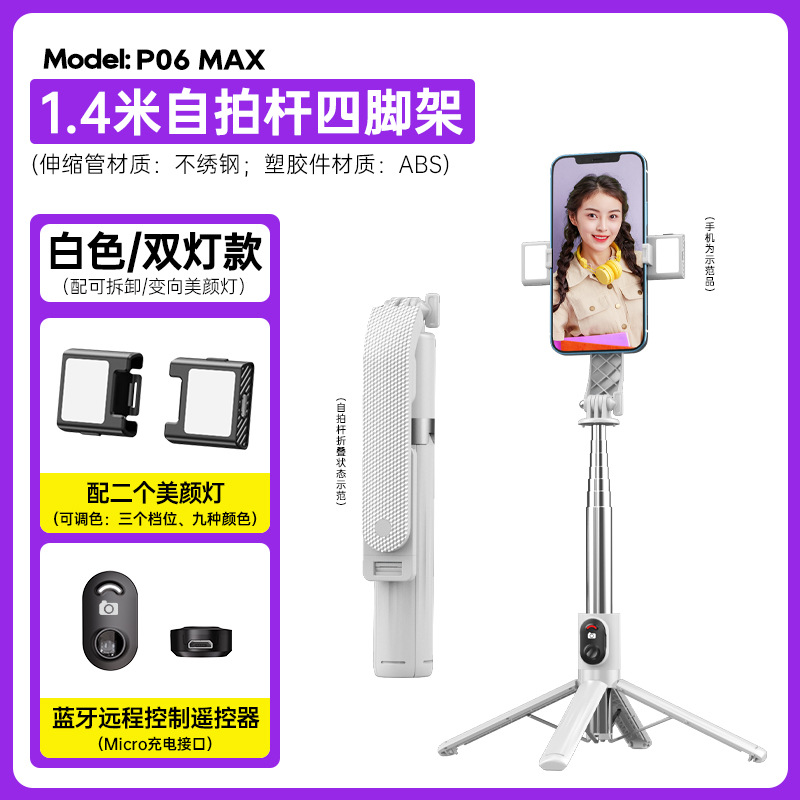 p06max-v2/stainless steel selfie stick/white/double lamp