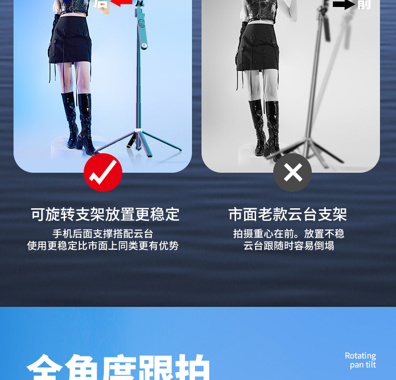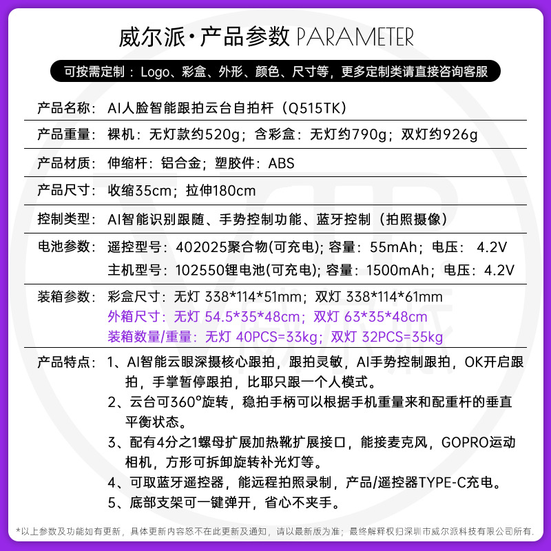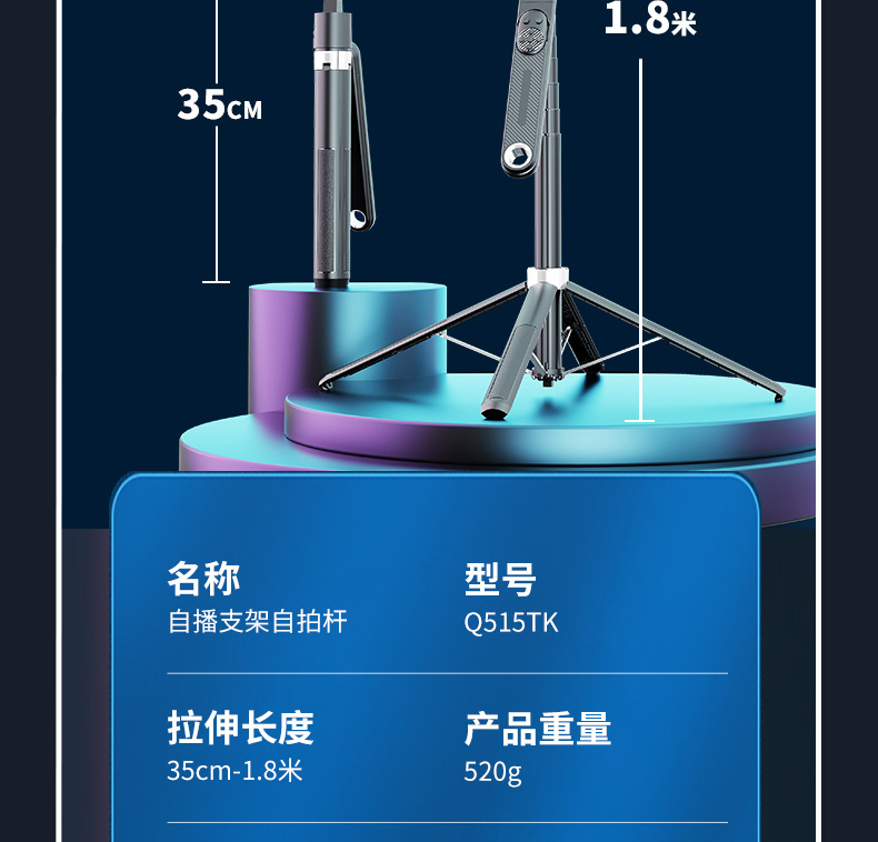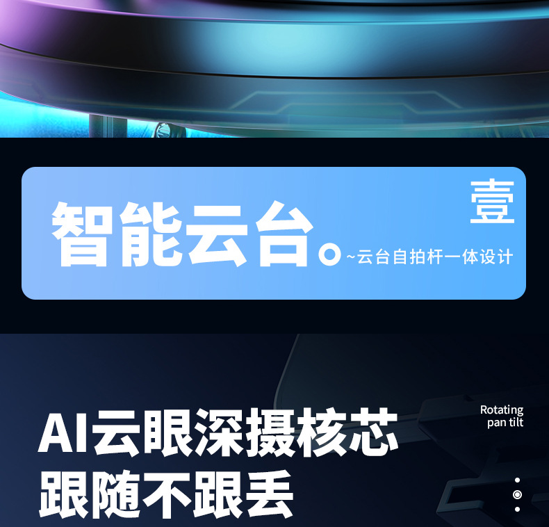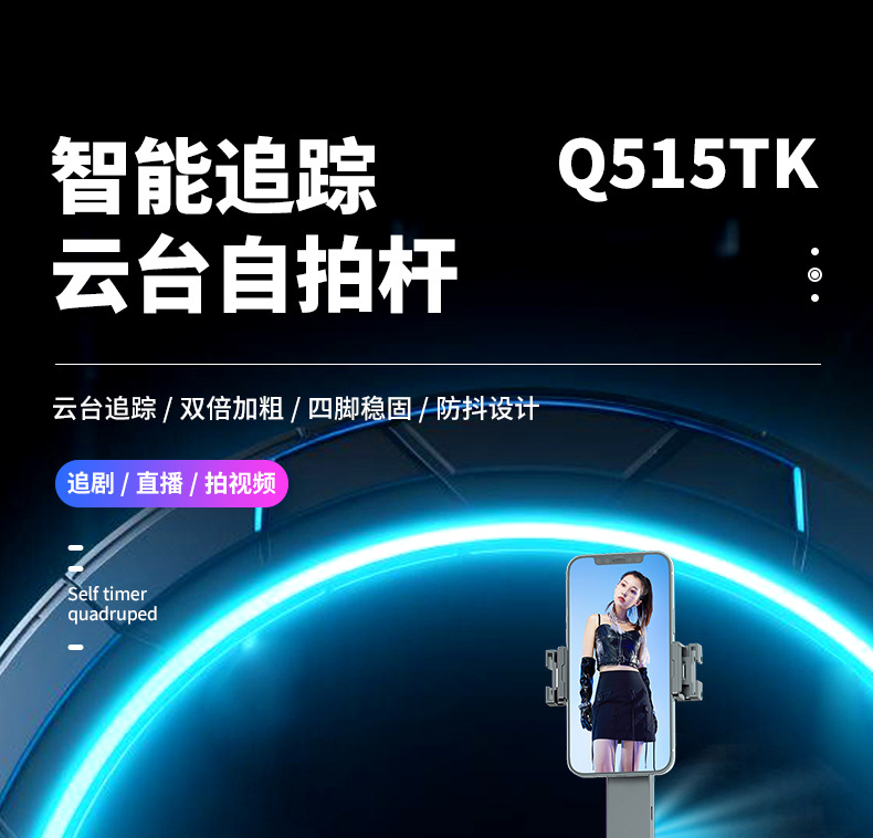 q515tk integrated smart ptz selfie stick/black/dual light