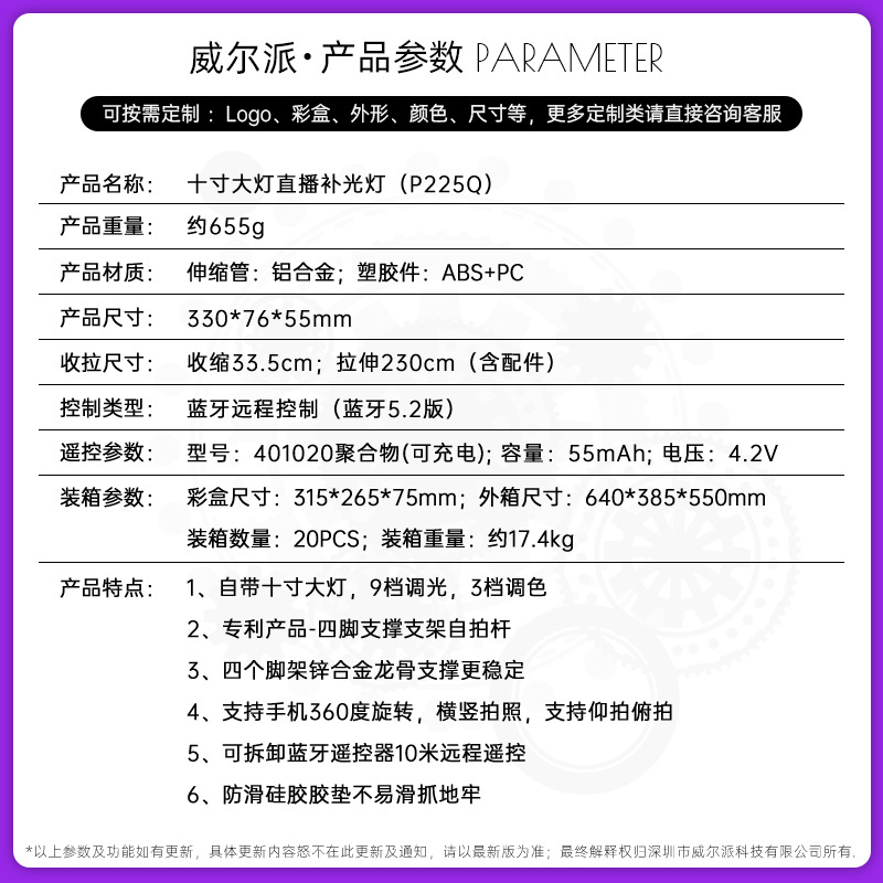 p225q stand for live streaming 10-inch round fill light/aluminum alloy