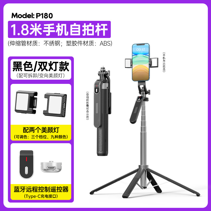 p180-v2 bluetooth selfie stick/1.8 m/dual light