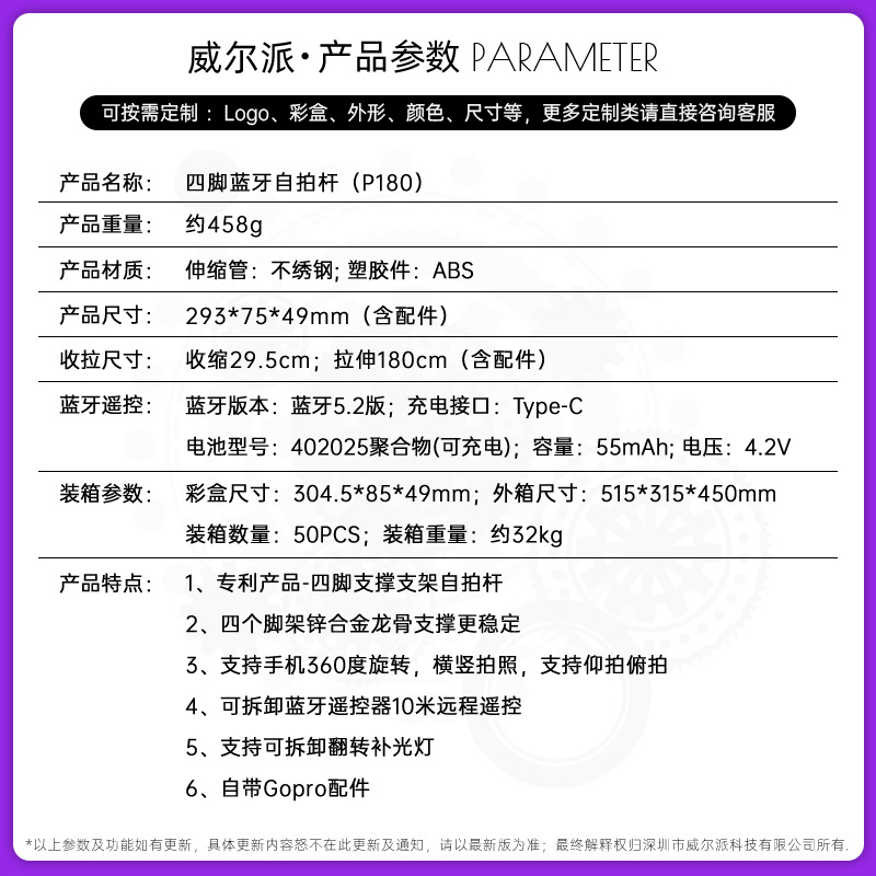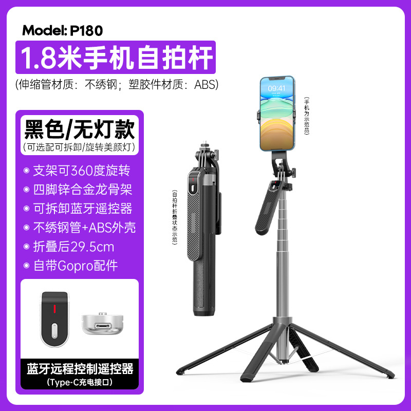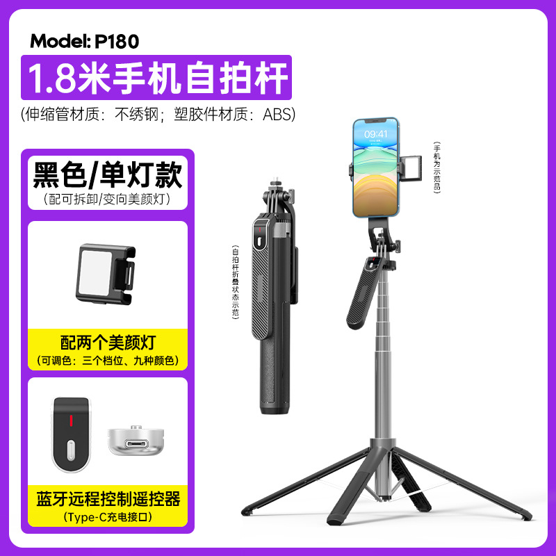 p180-v1 bluetooth selfie stick/1.8 m/single light