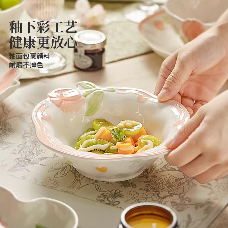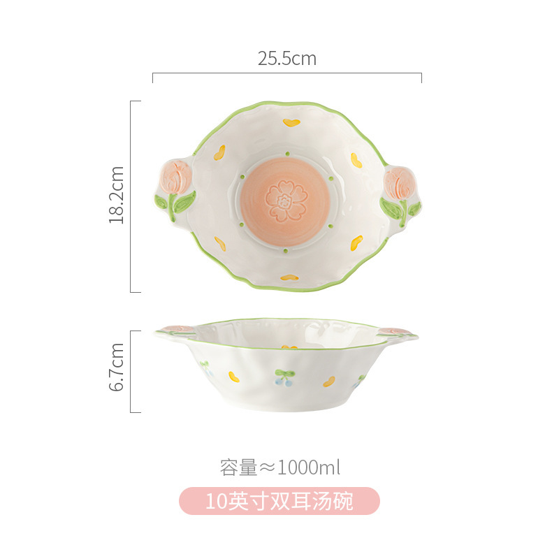 10-inch binaural soup bowl/embossed tulip