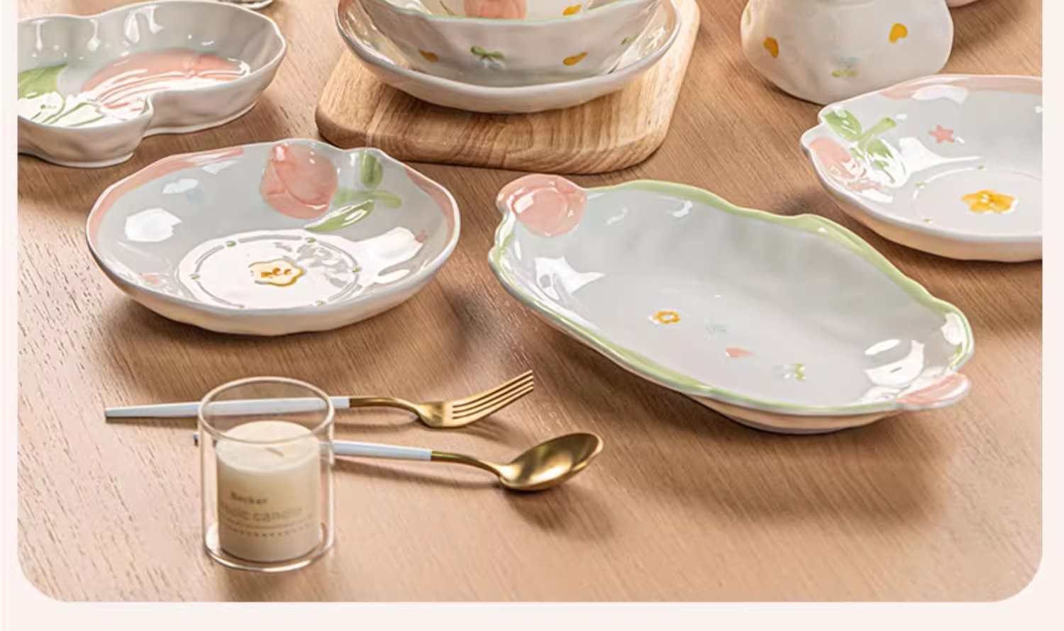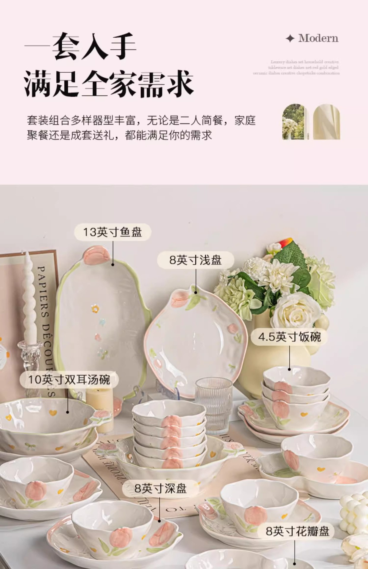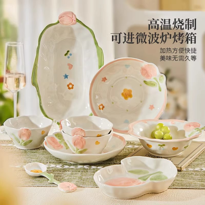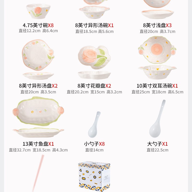 8-person food 35-piece set-embossed tulip-gift box