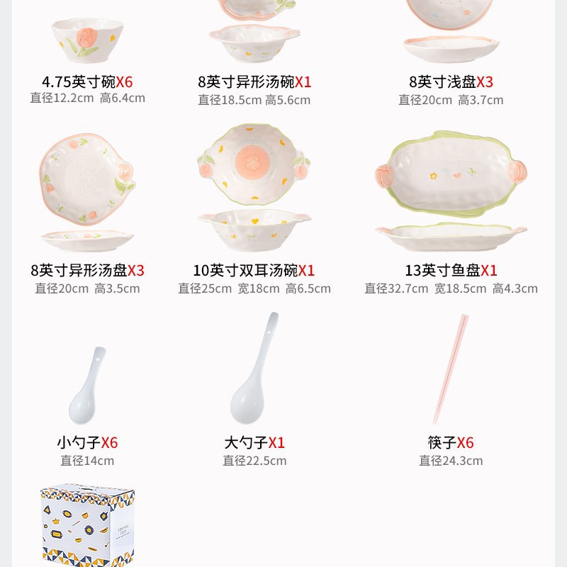 6-person food 28-piece set-embossed tulip-gift box