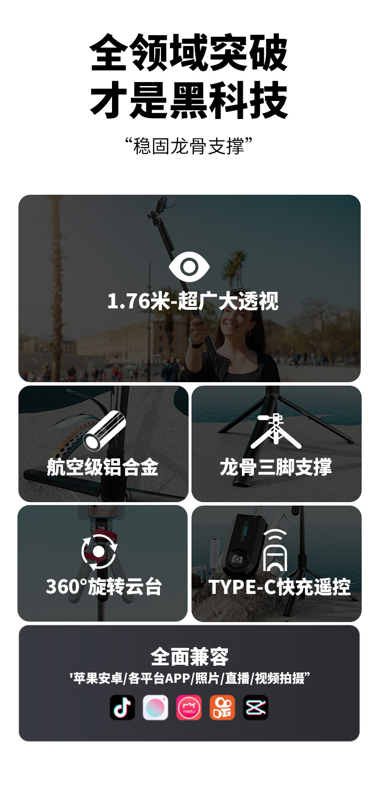 p205-v1(1.8m + single fill light + charging remote control + metal keel support)
