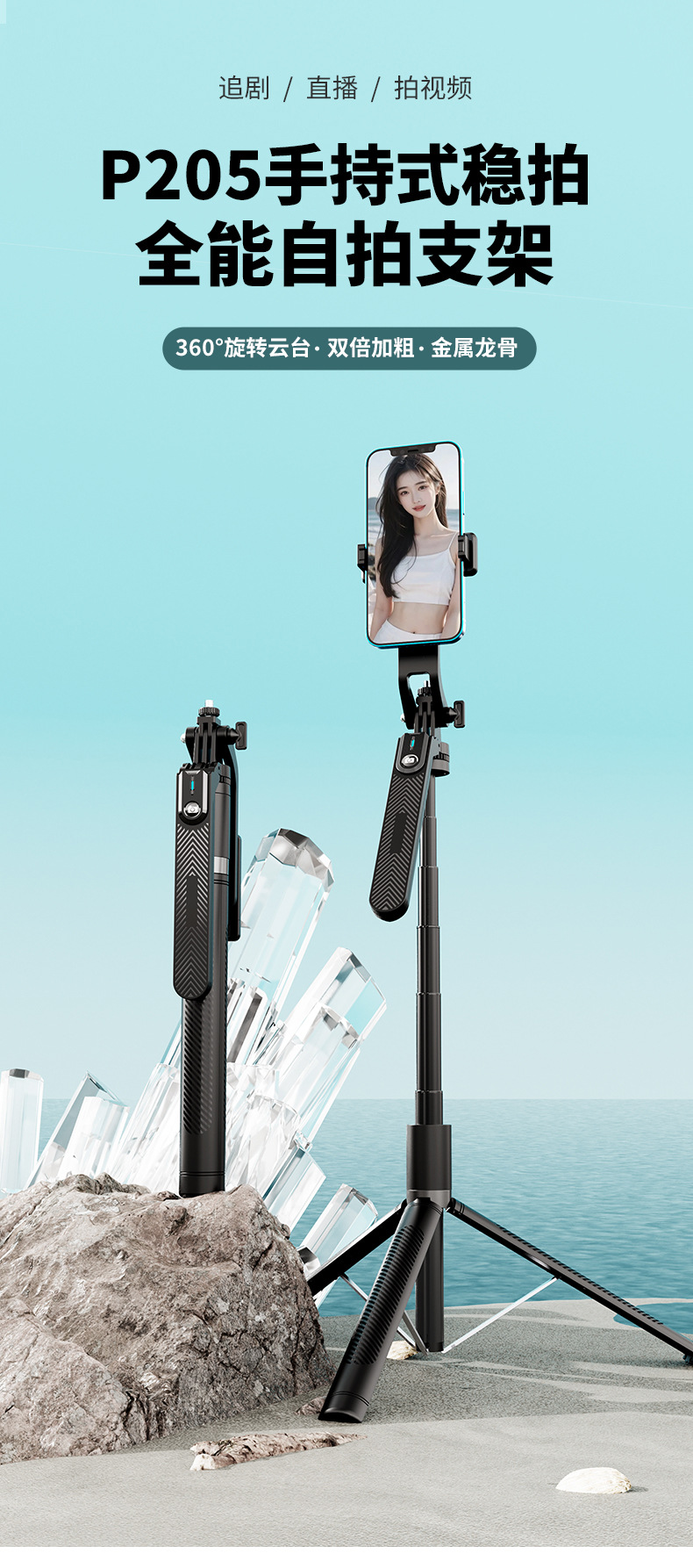 p205-v2(1.8m + double fill light + charging remote control + metal keel support)