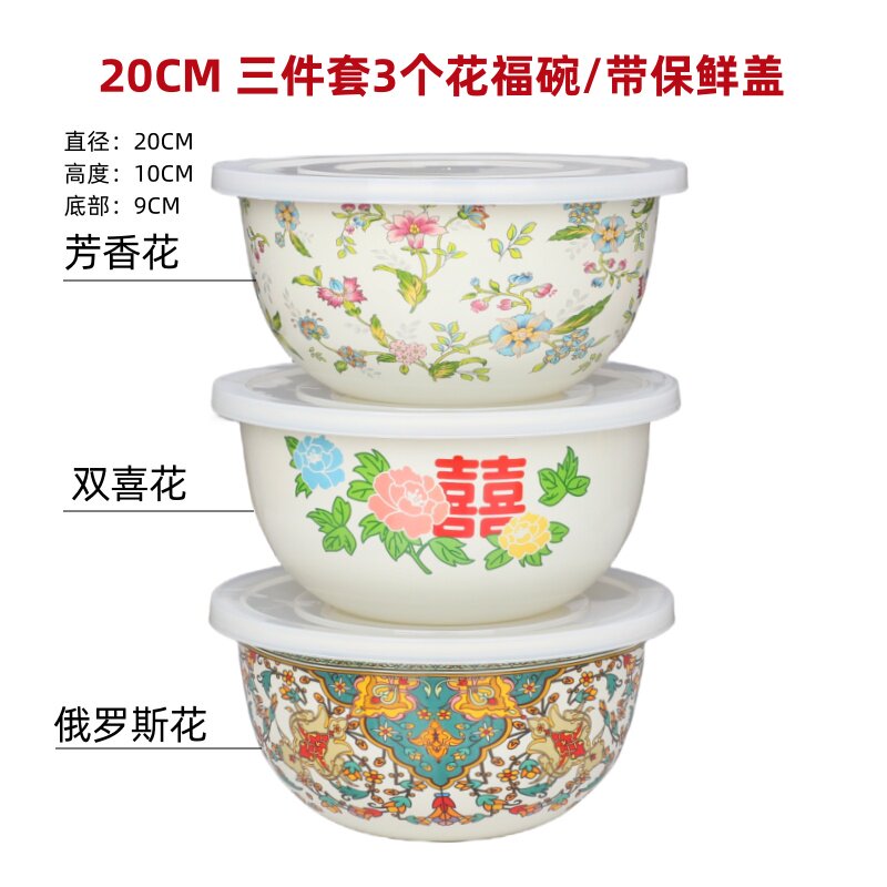 20cm three-piece set of 3 flower blessing bowls/with fresh cover