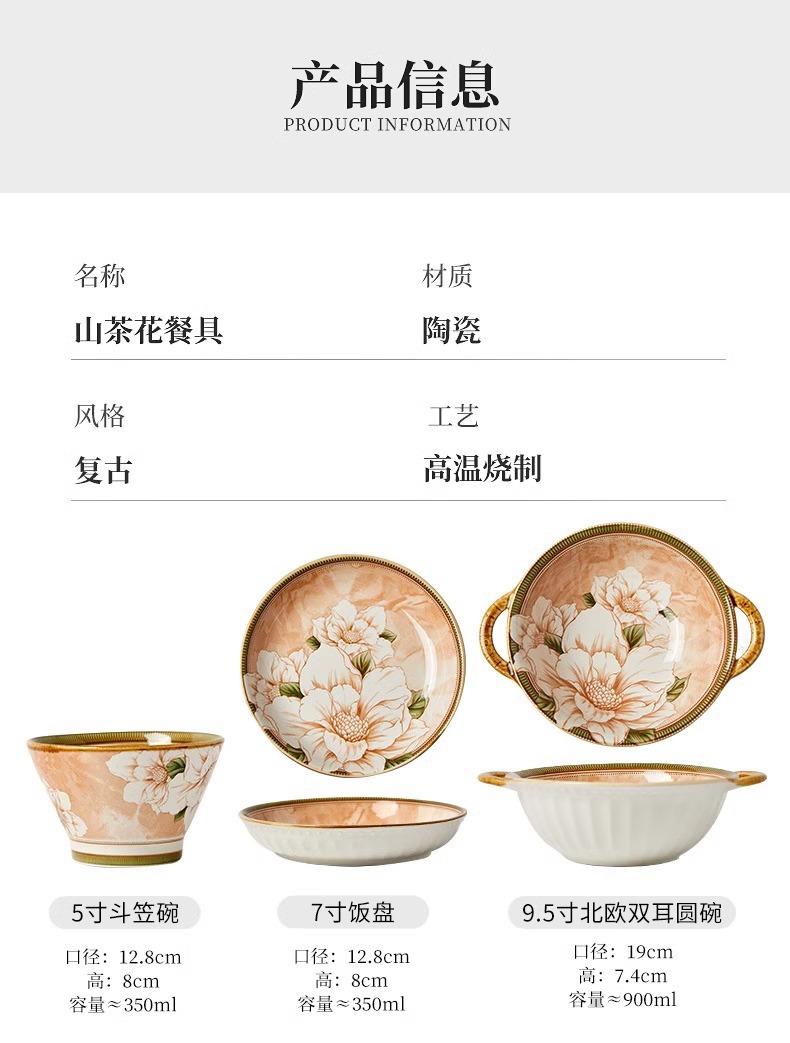 camellia 9.5-inch nordic binaural round bowl