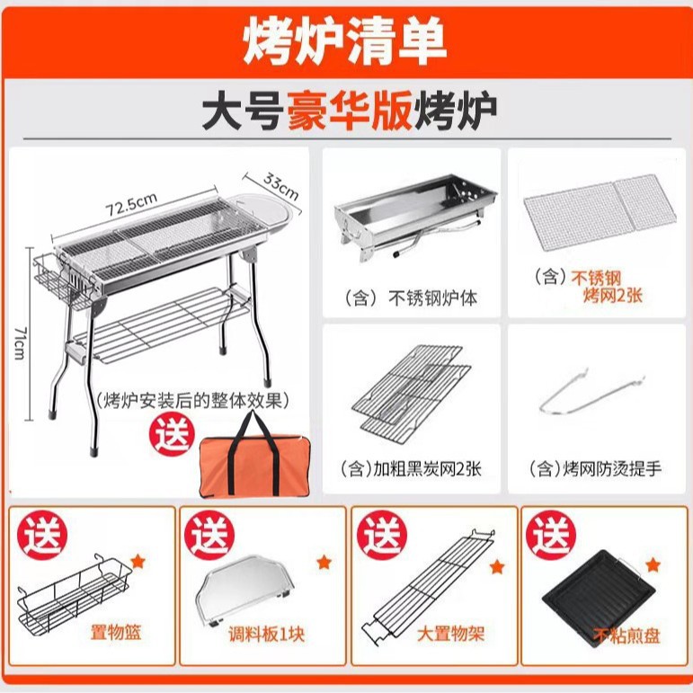 large stainless steel 73*33*70cm grid bbq grill + (luxury package)