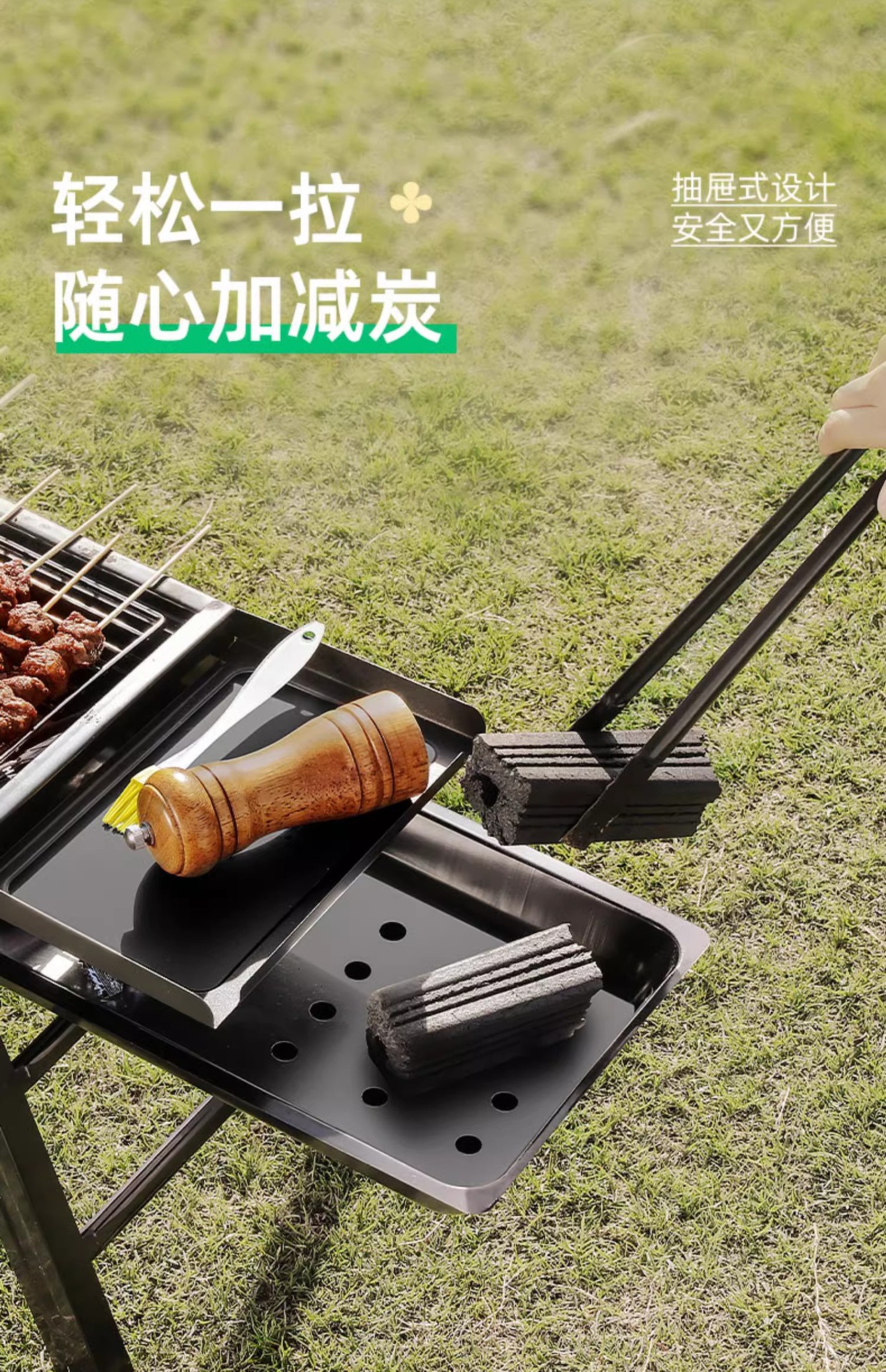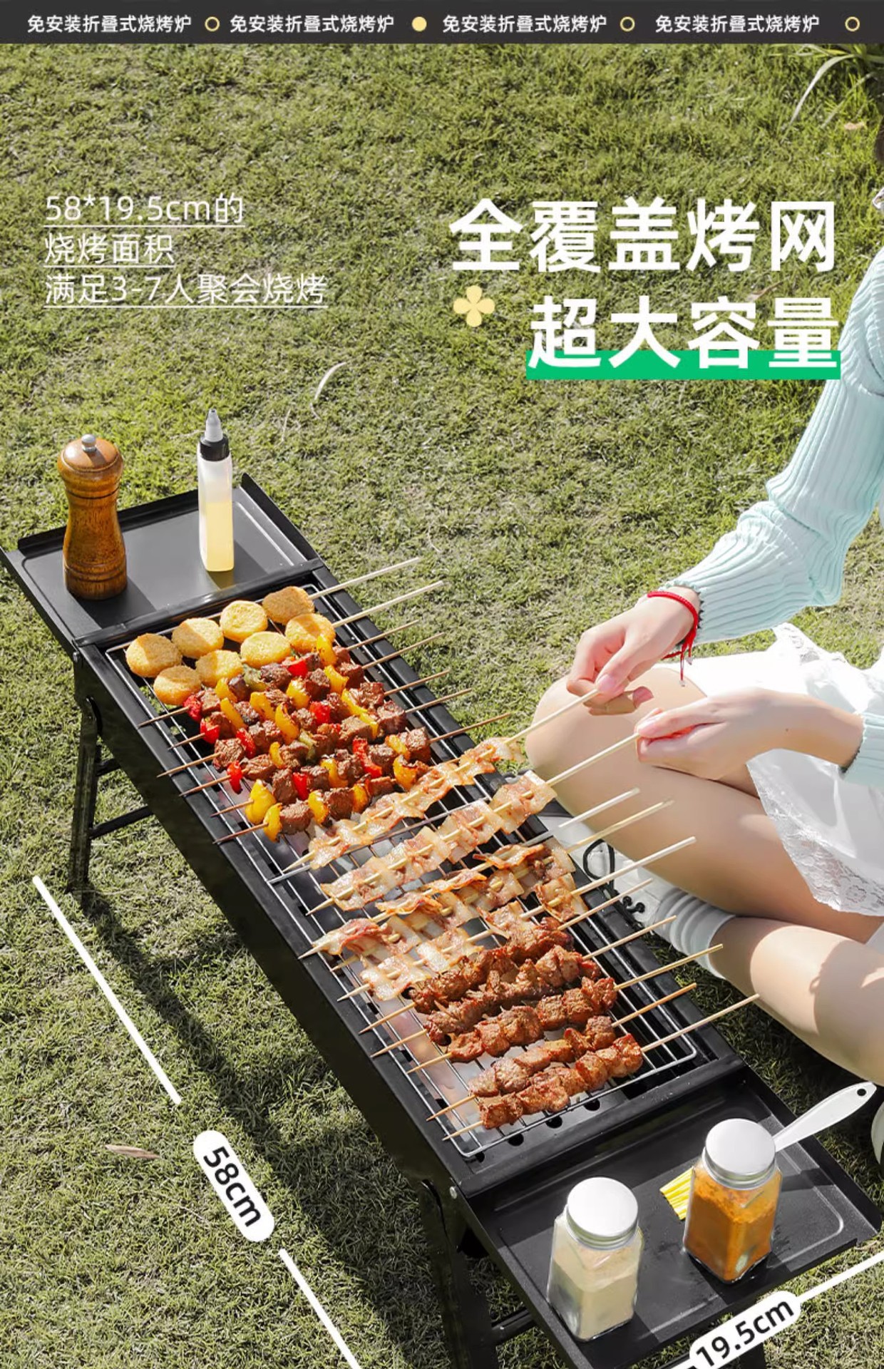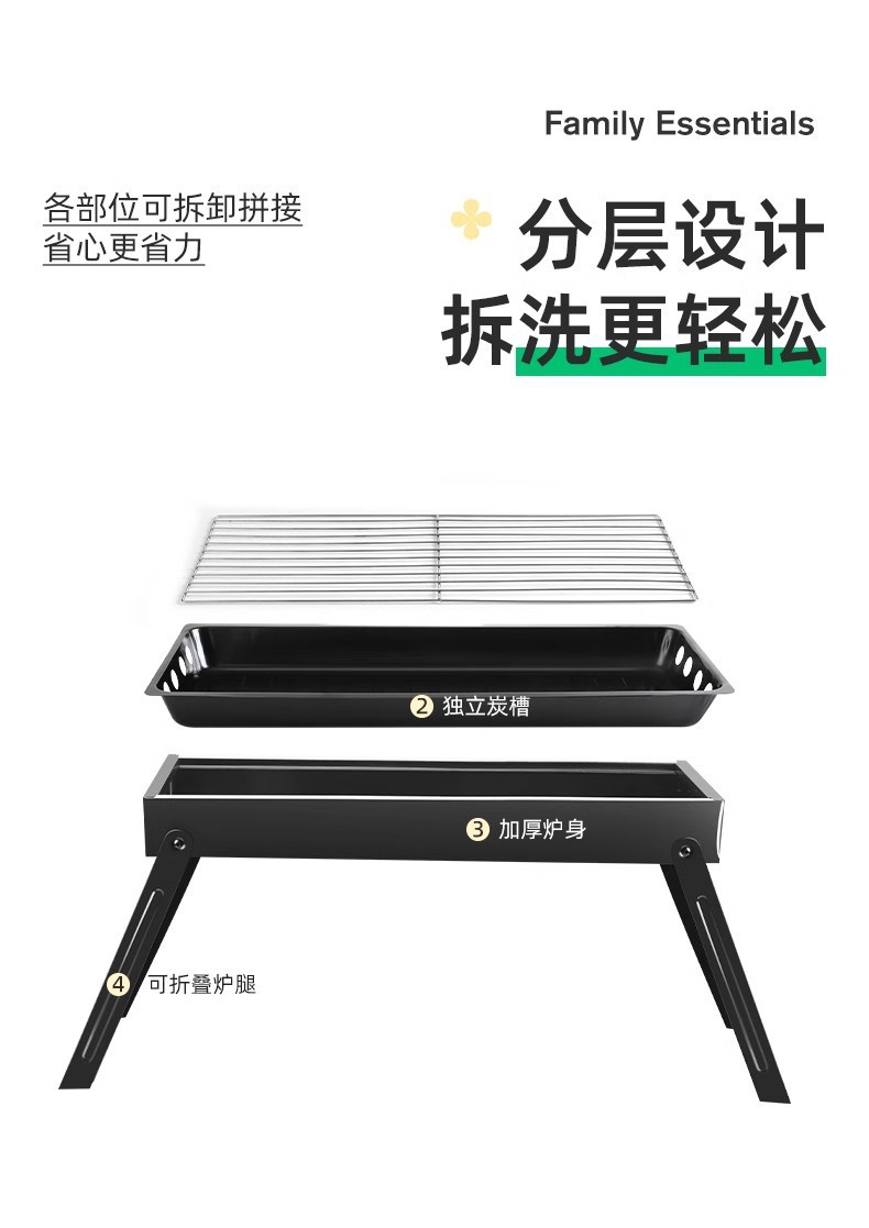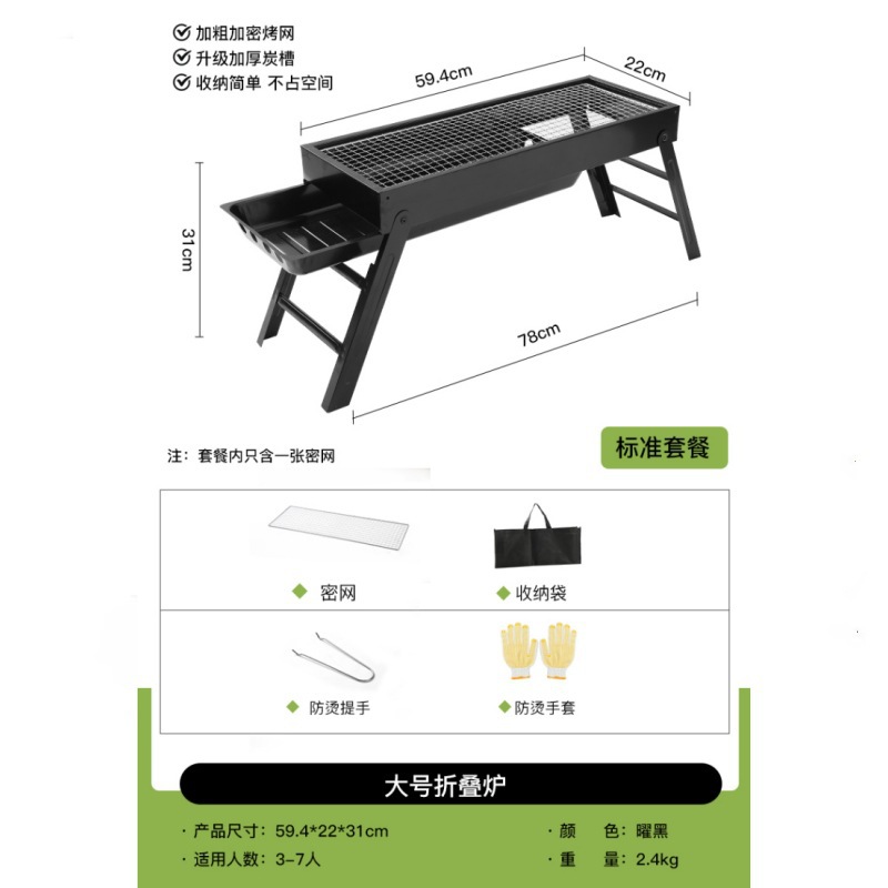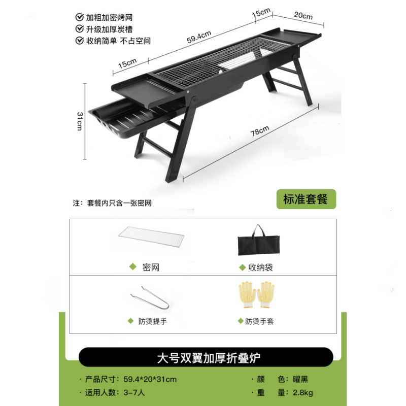 double-wing large oven [strip bbq grill + barbecue 5-piece set +1.50kg charcoal] installation-free folding stove