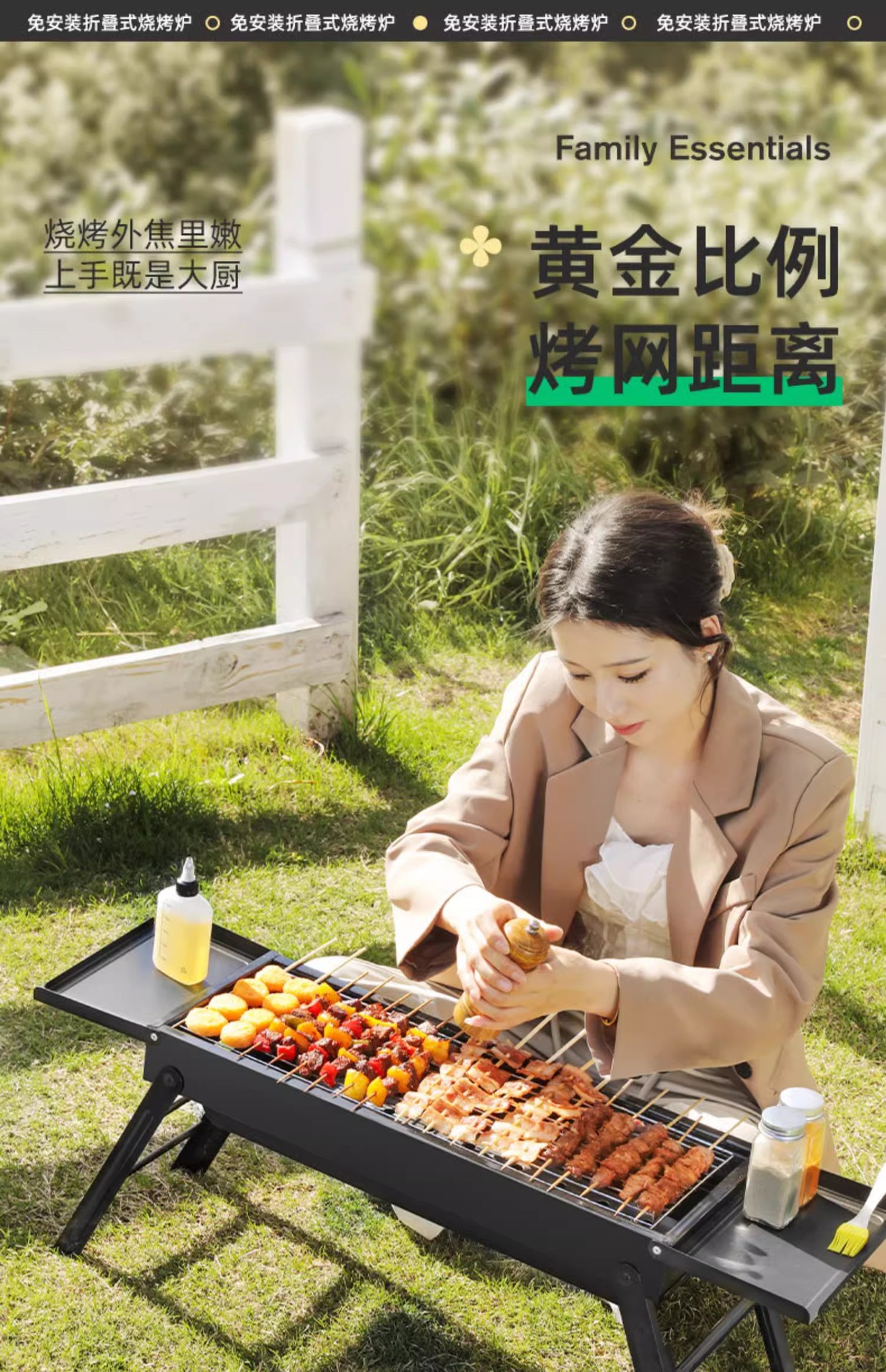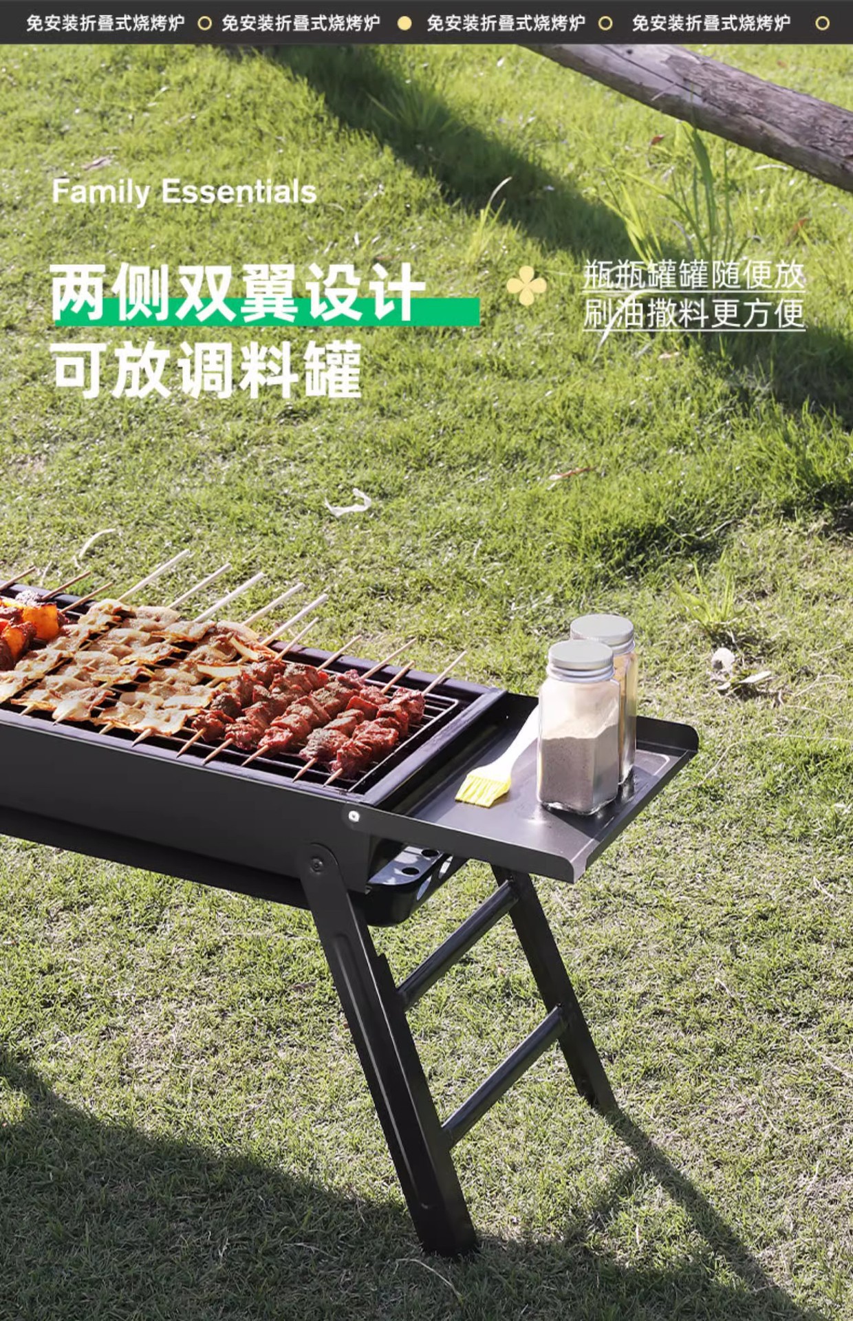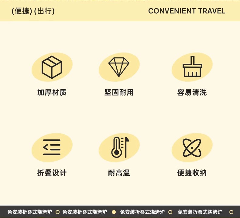double-wing large oven [strip bbq grill + barbecue 3-piece set] installation-free folding stove