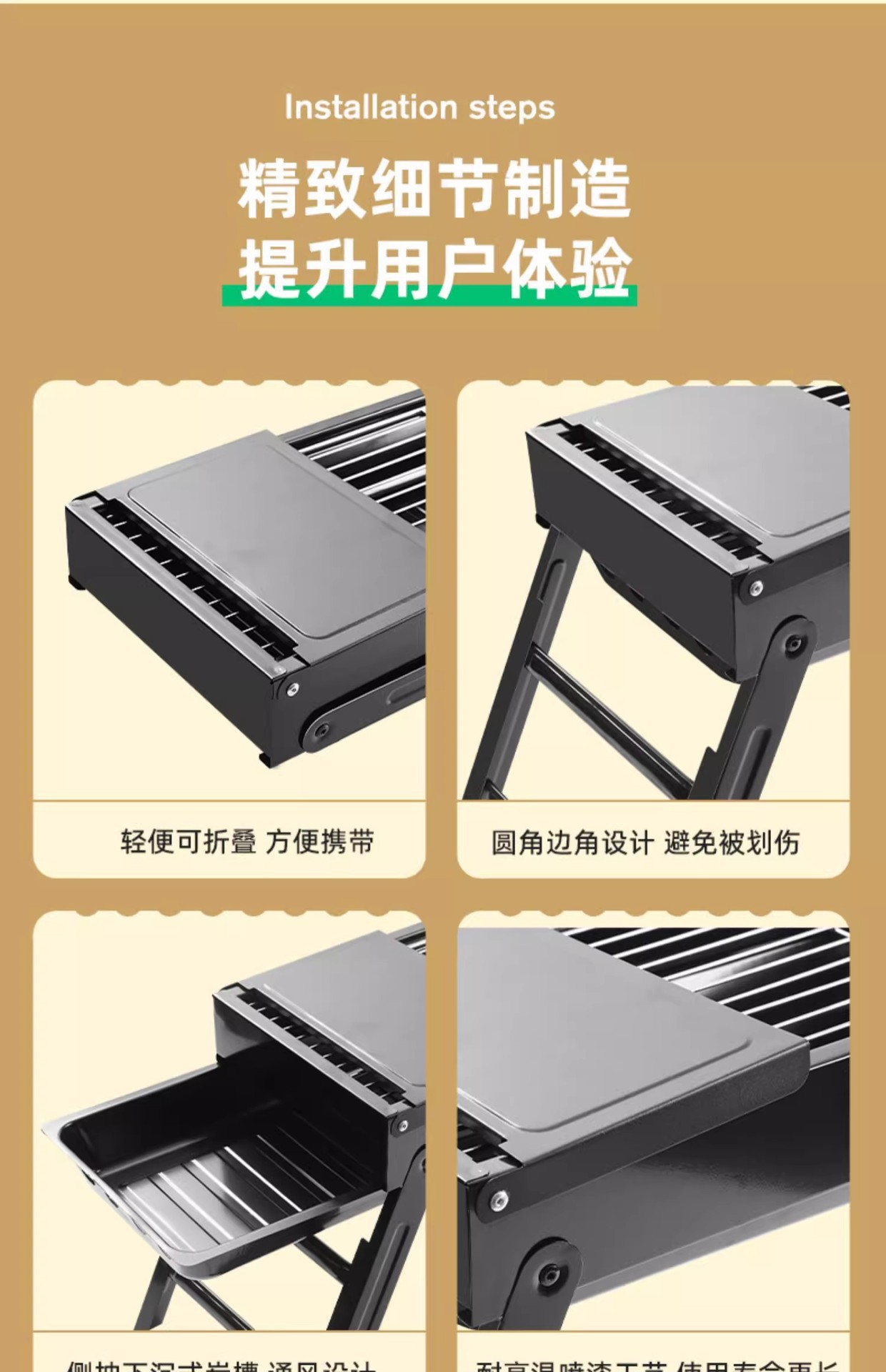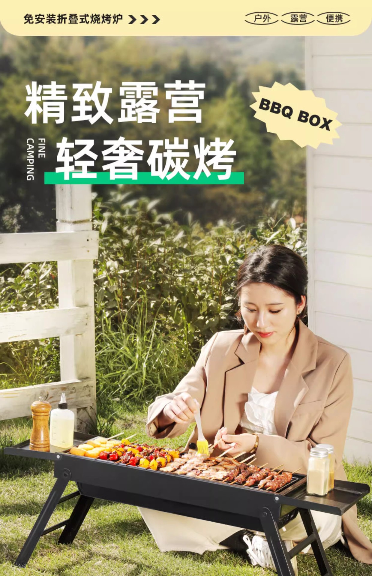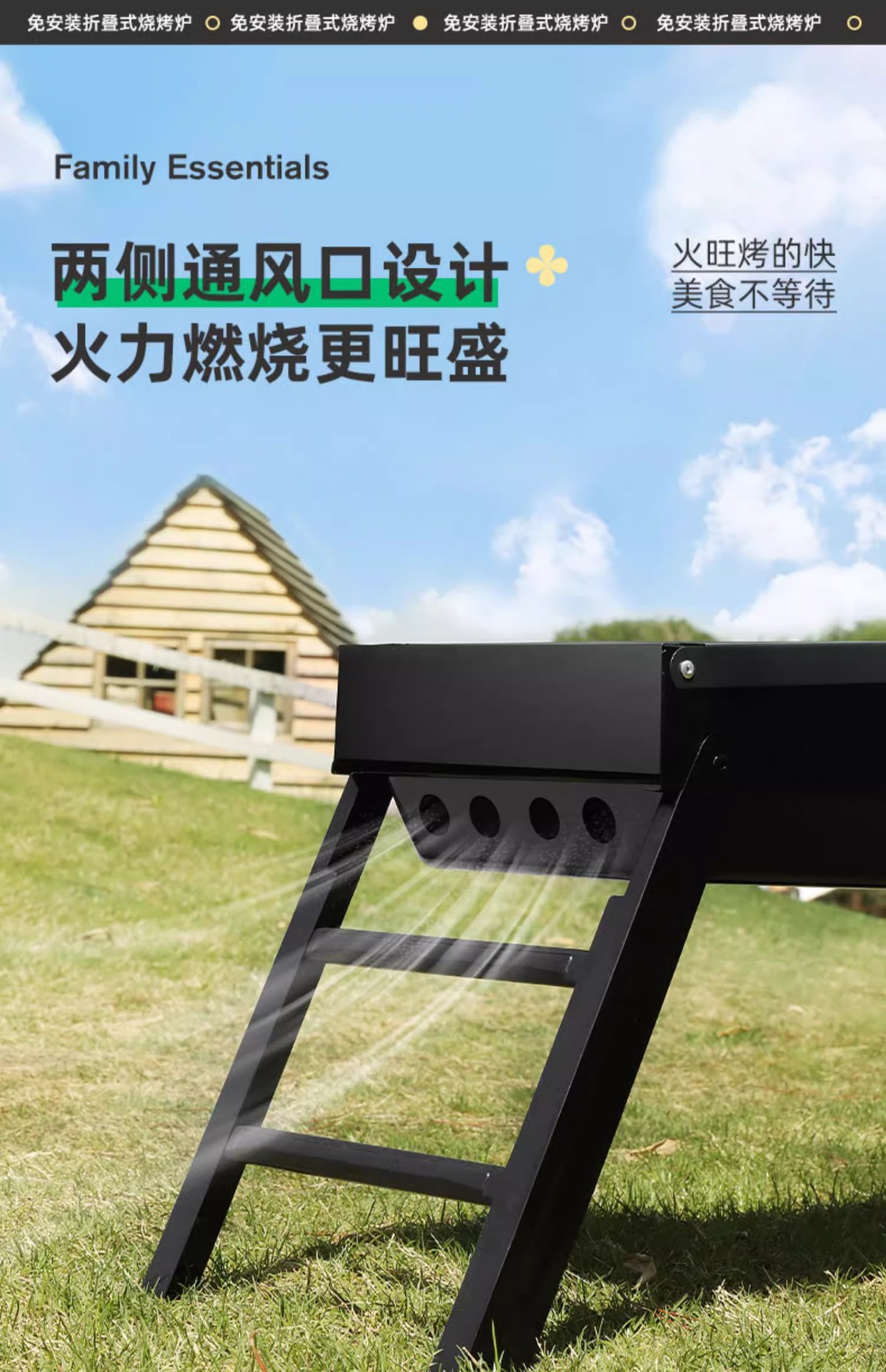 double-wing large oven [strip bbq grill + barbecue 3-piece set] installation-free folding stove