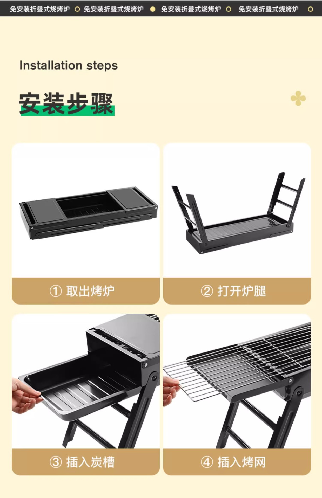 large oven [strip bbq grill + barbecue 3-piece set] installation-free folding stove