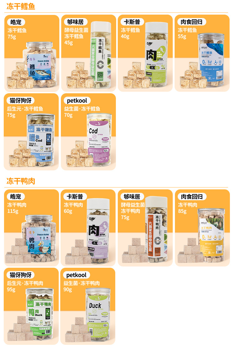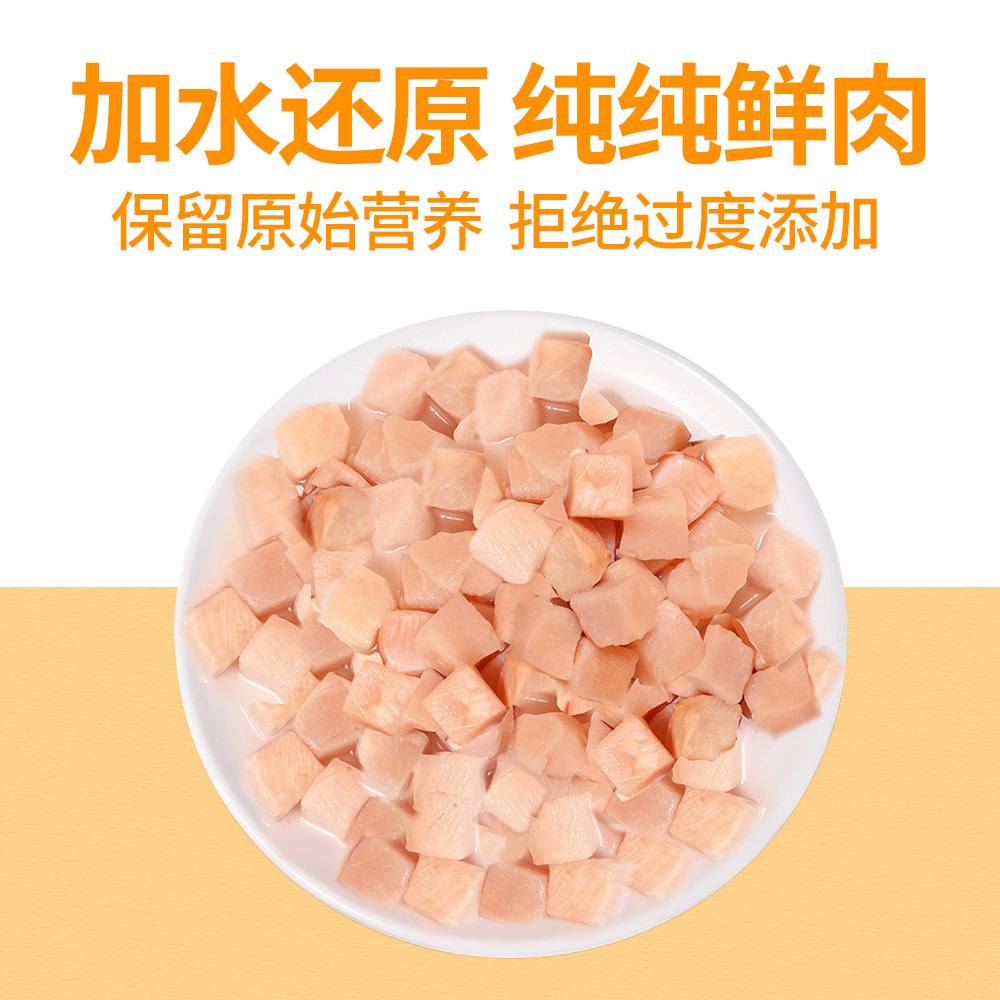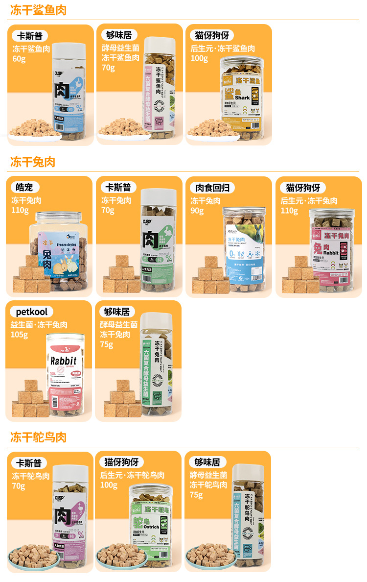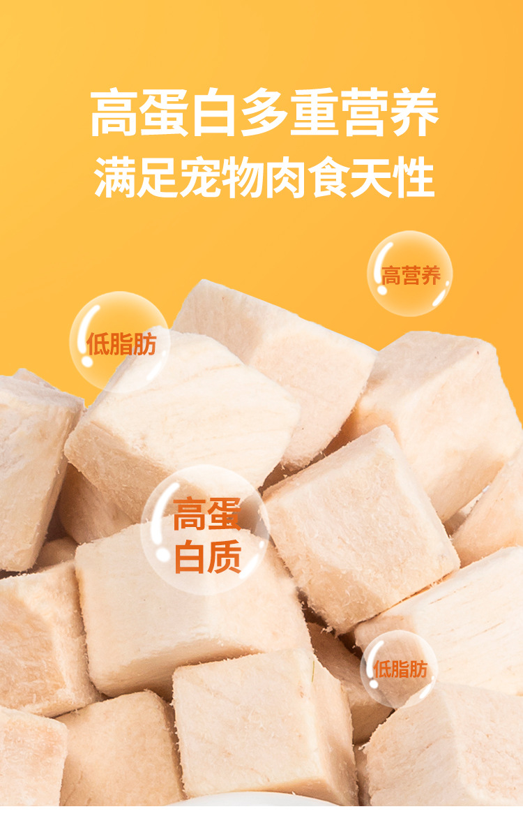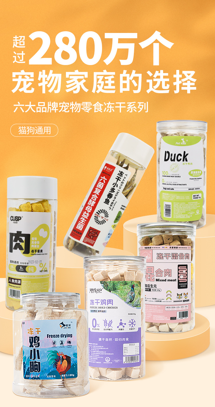 Based on the production records and extensive statistical data analysis of Rizhao Shungong Pet Food Co., Ltd., a real and stable freeze-drying process and process control have been established. It has been found that raw materials including chicken, duck, cod, salmon, beef, rabbit, lamb, egg yolk, and chicken liver, as well as fruits and vegetables, after being subjected to low-temperature freeze-drying, only 20% of the raw materials are converted into finished products. The finished products retain their nutritional components such as protein, fat, ash, and fiber intact, except for the loss of water. Essentially, five times the weight of the raw materials are concentrated into only one times the weight of the finished product through freeze-drying. The nutrients are not lost, and the products are easy to store and preserve. Therefore, the products in this shop claim a 5:1 concentration of ingredients, and the concentration in this shop only refers to the weight concentration of ingredients and nutrition.