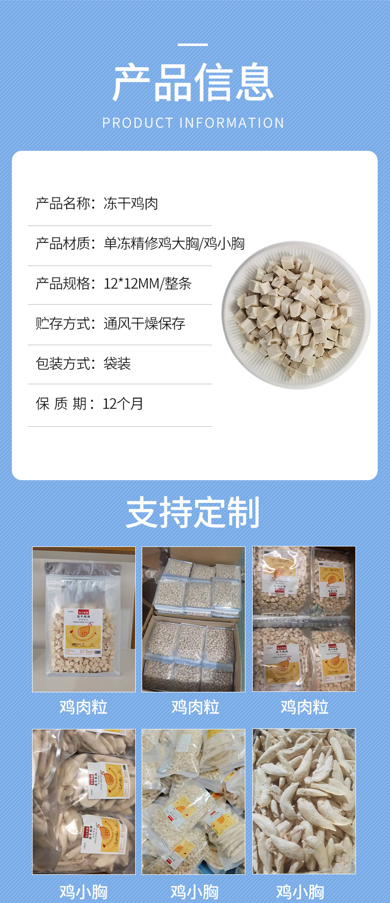 flavor: chicken grains (small particles 5mm), chicken grains (1.2c