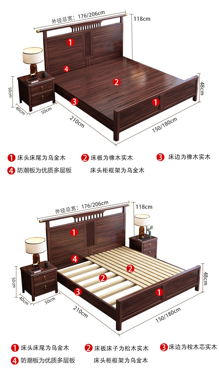 | 1.8*2 m bed +1 bedside table; mortise and tenon structure | CN¥ 2487.5 |