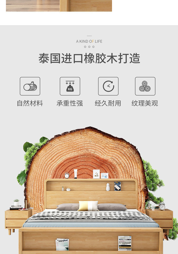 | rubber wooden bed +1 bedside table + 20cm spring latex pad | CN¥ 1587.5 |