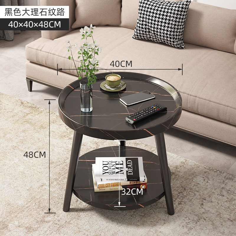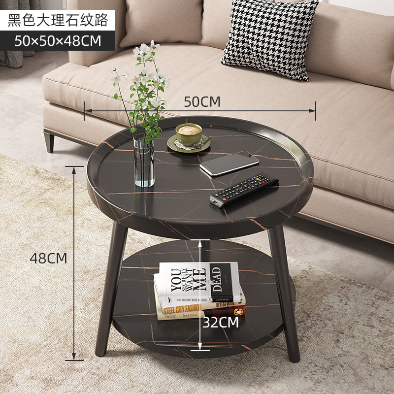 50cm floor-standing double-tier storage unit [black stone pattern] with metal iron legs