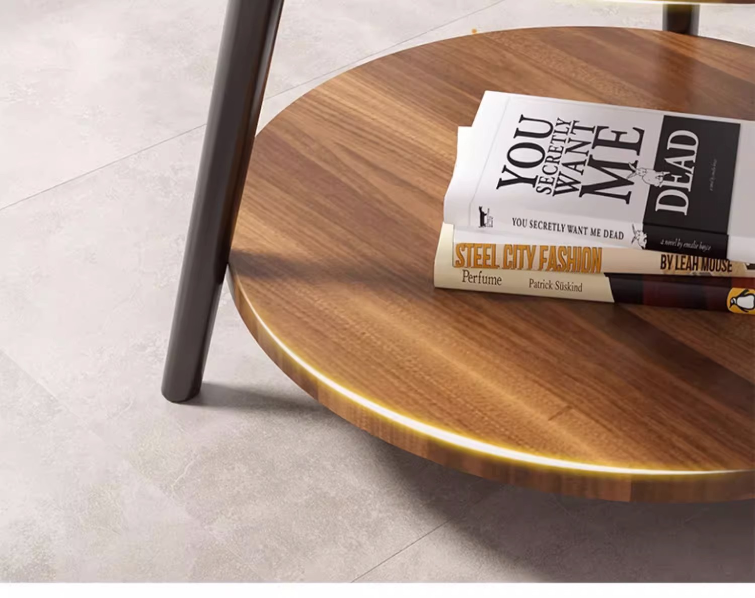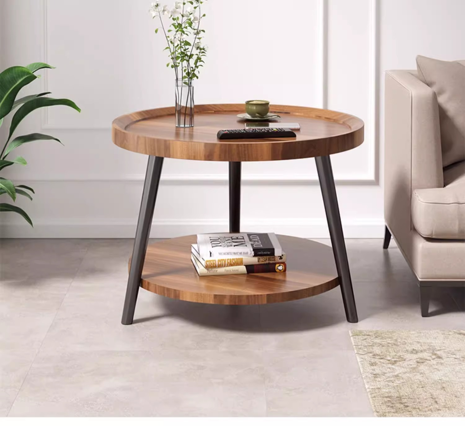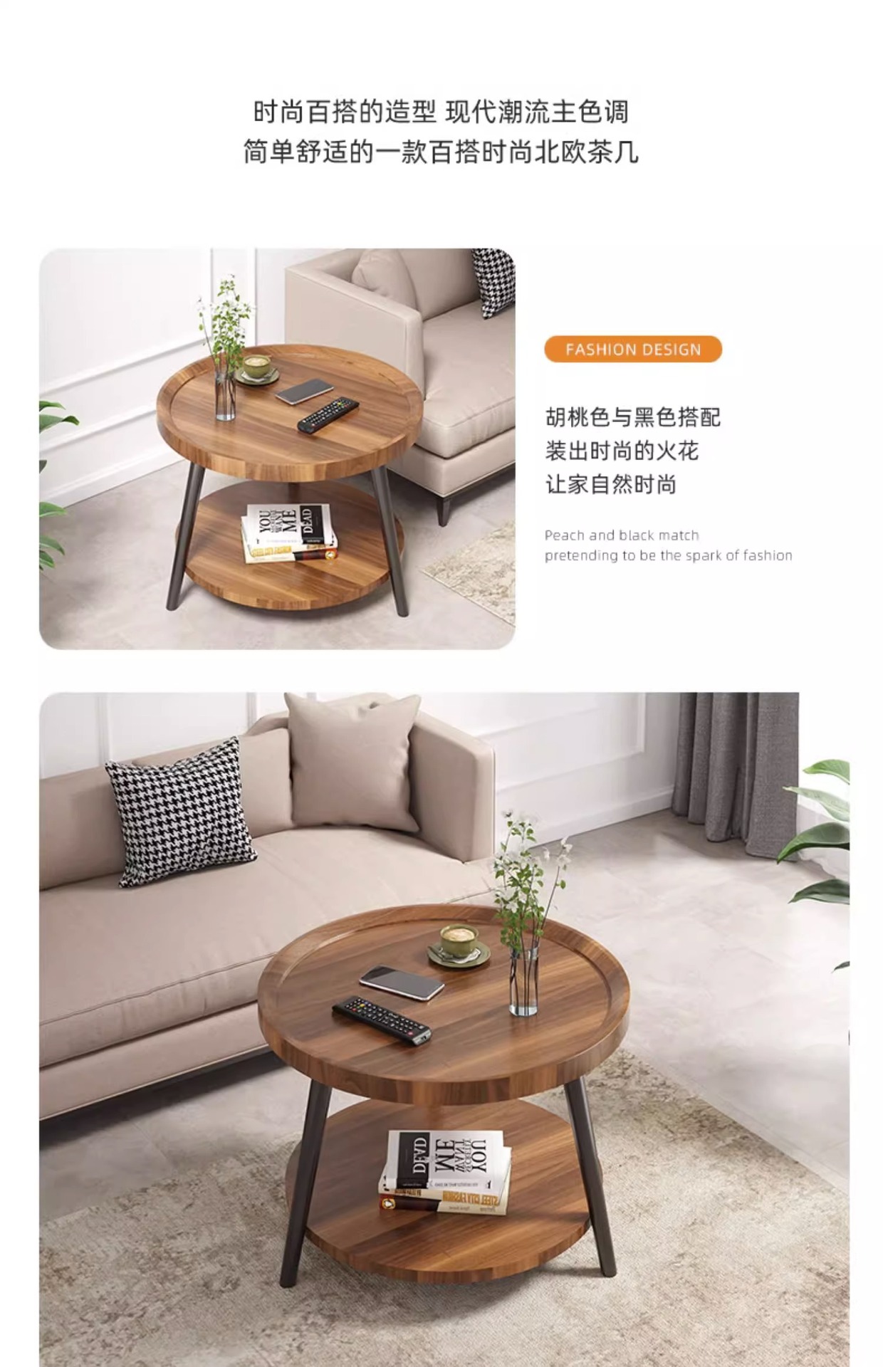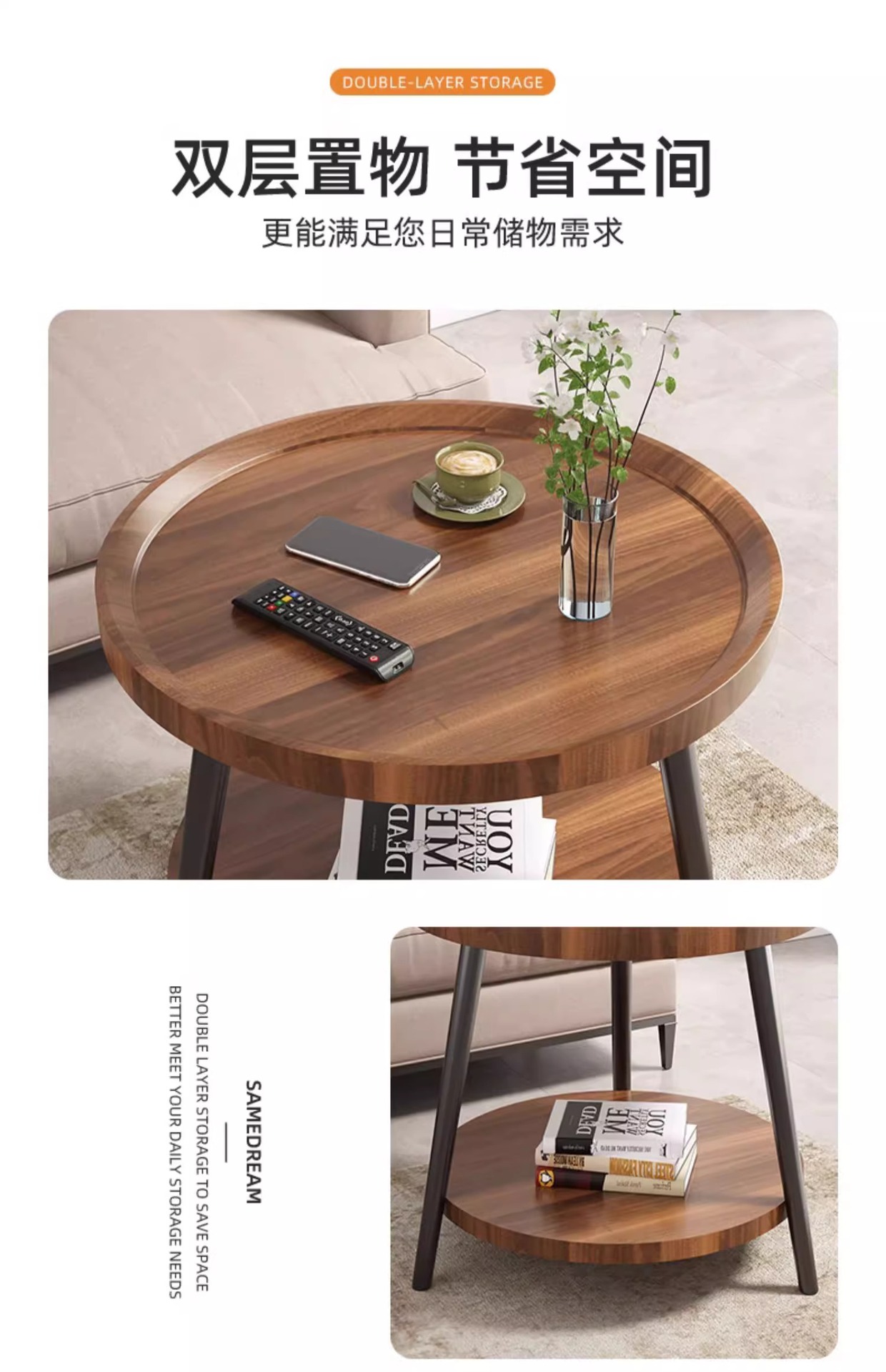 50cm floor-standing double-decker storage unit [walnut color] with metal iron legs