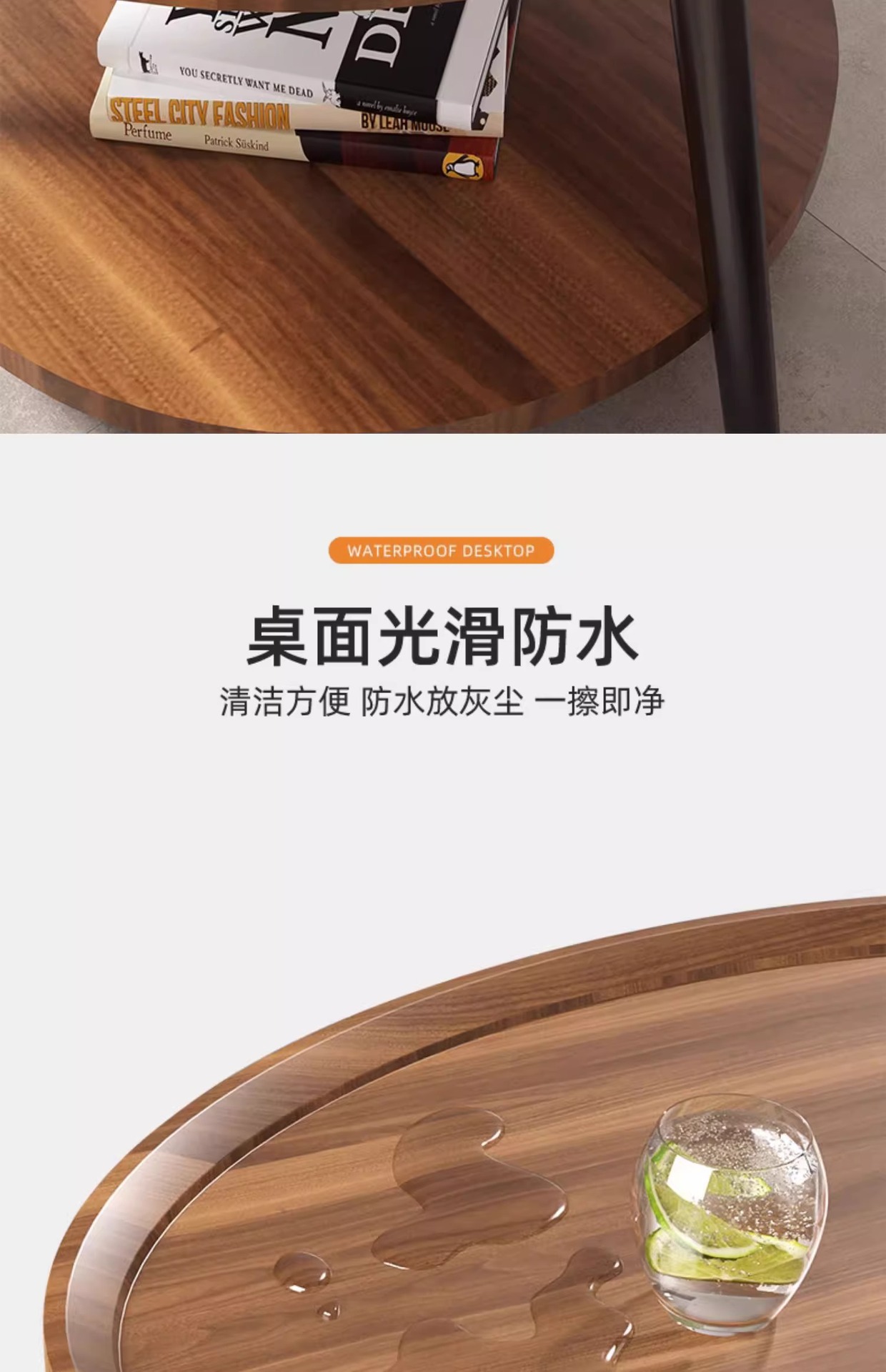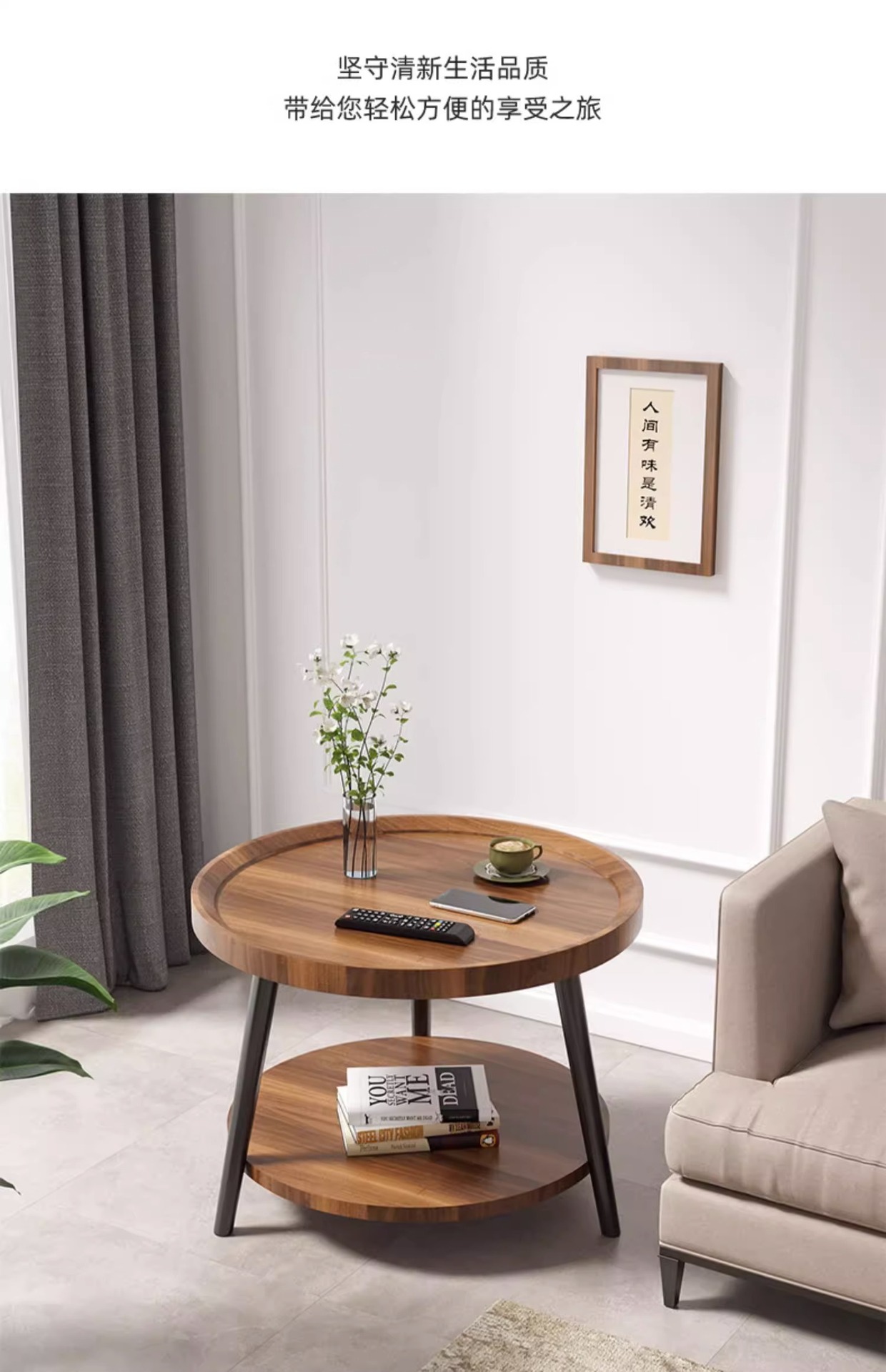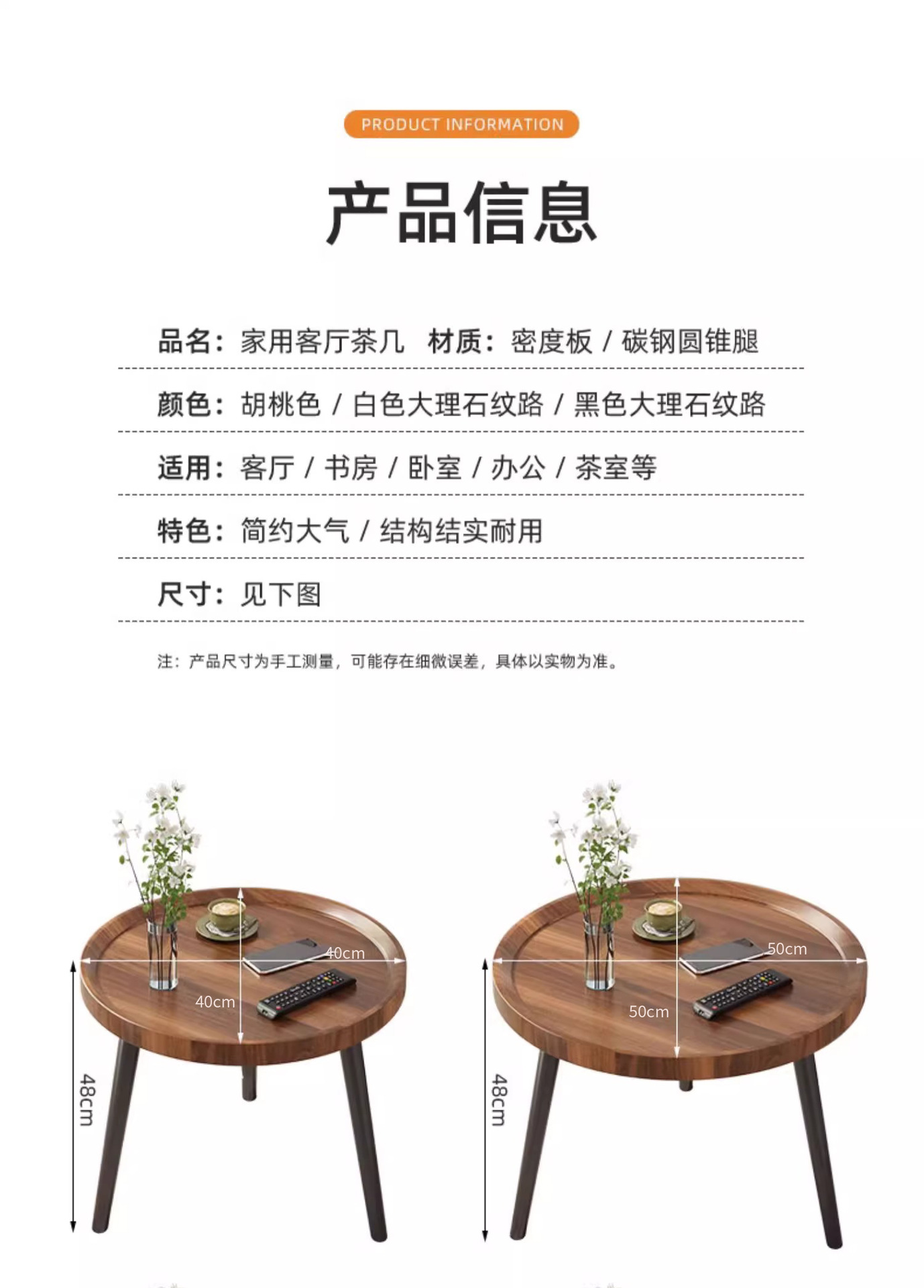 50cm floor-standing double-decker storage unit [walnut color] with metal iron legs