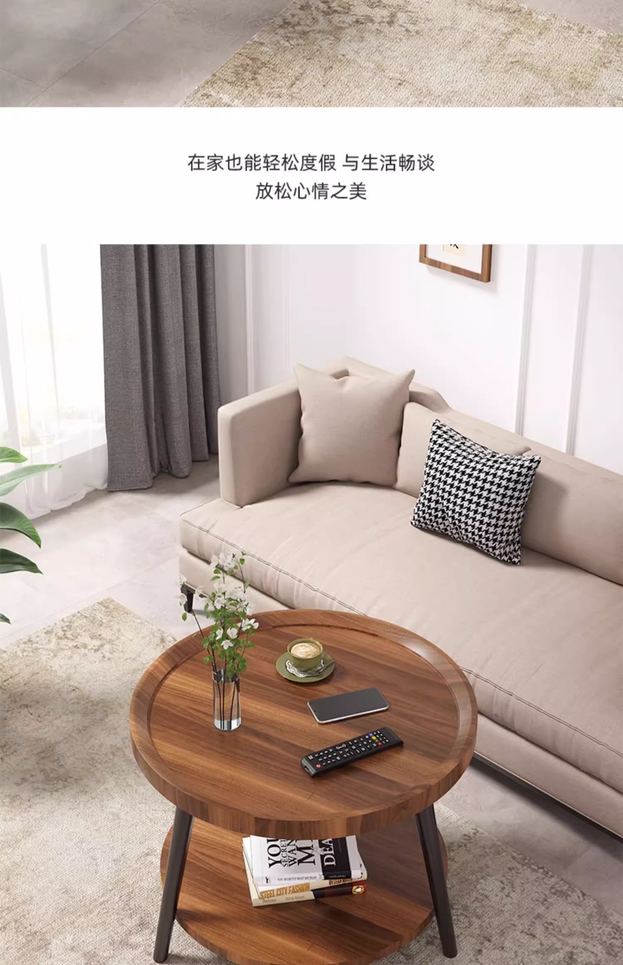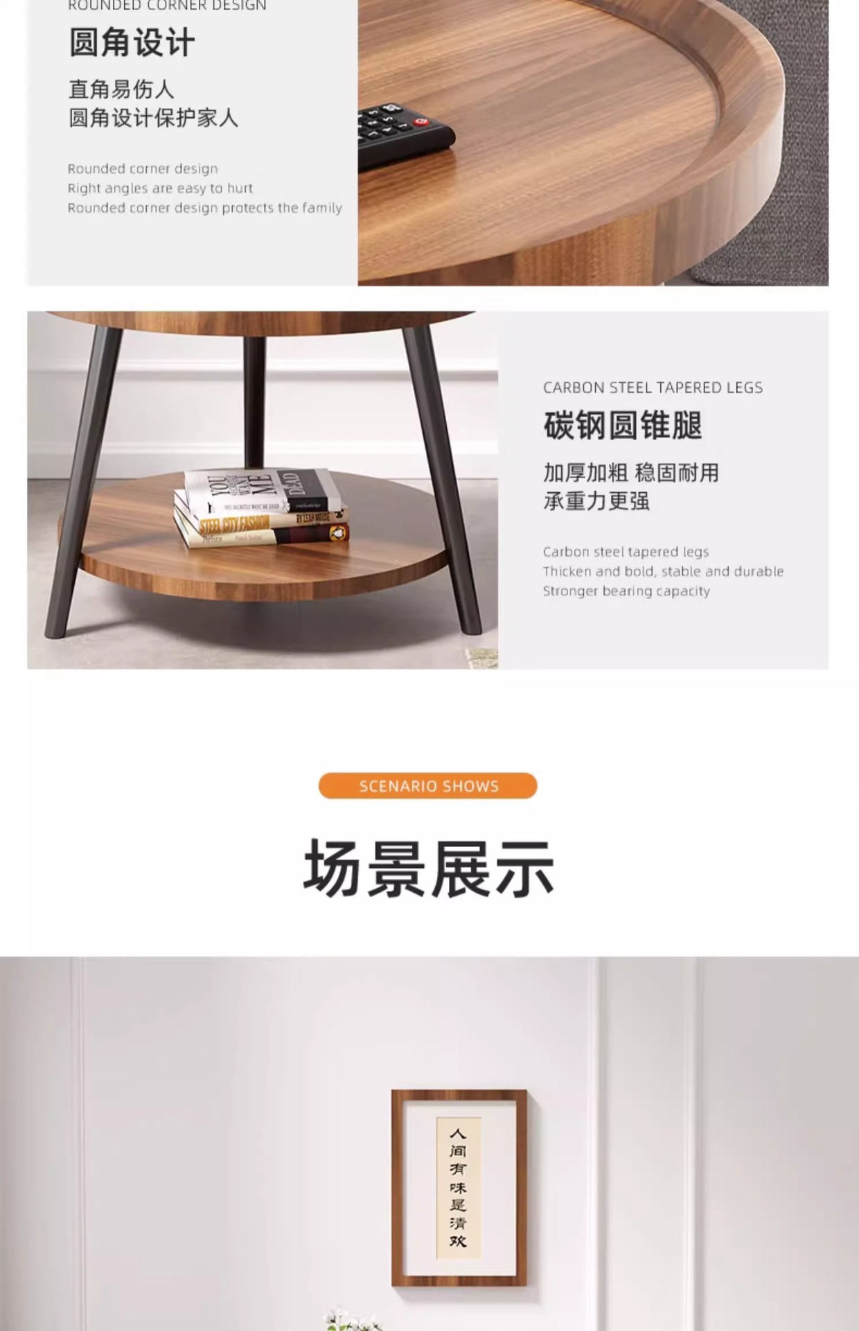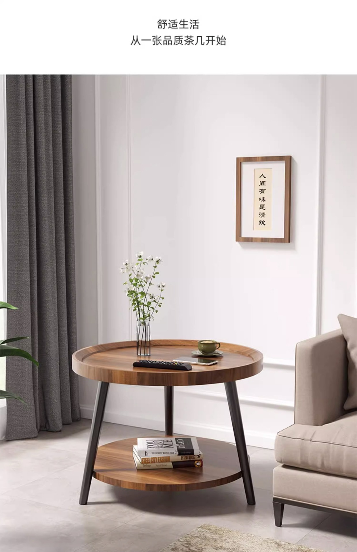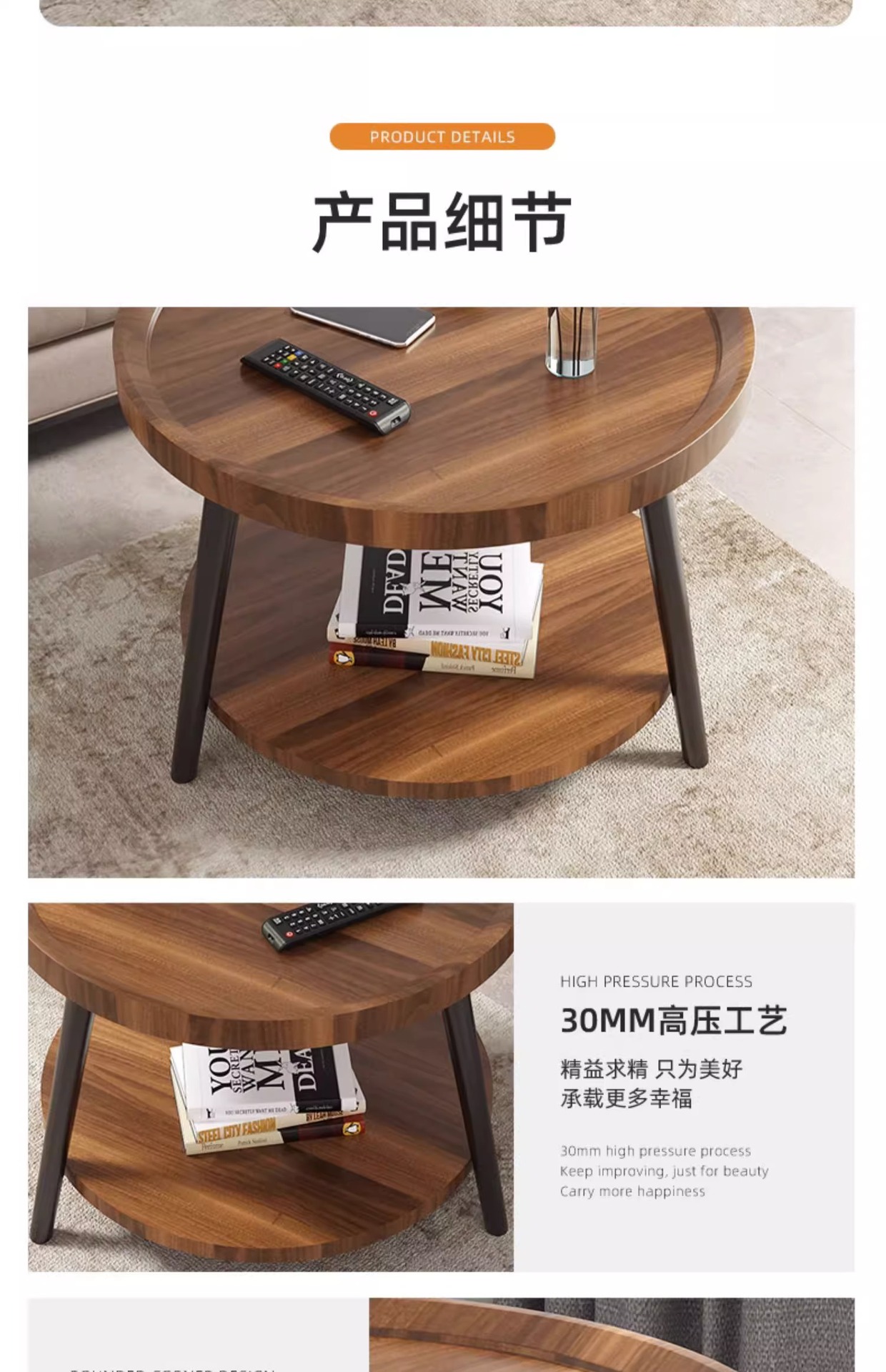 50cm floor-standing double-decker storage unit [walnut color] with metal iron legs