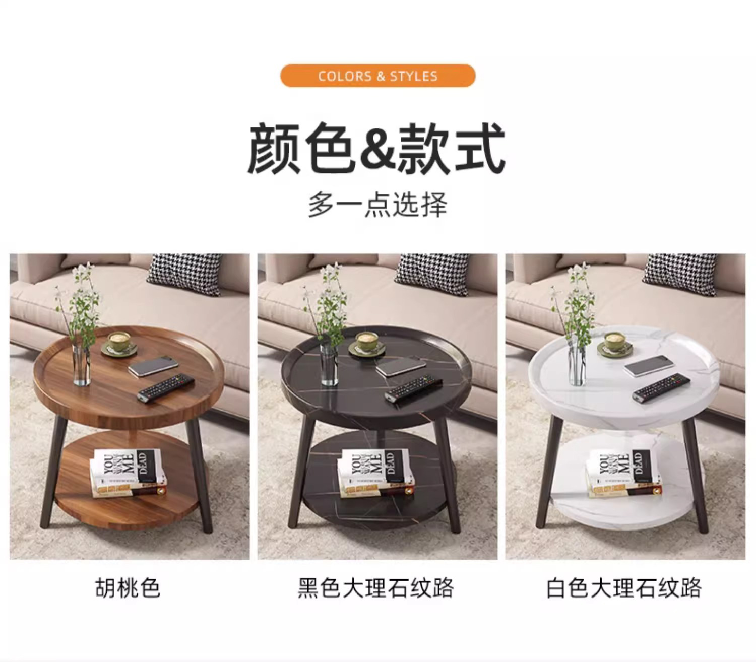 50cm floor-standing double-tier storage unit [white stone pattern] with metal iron legs