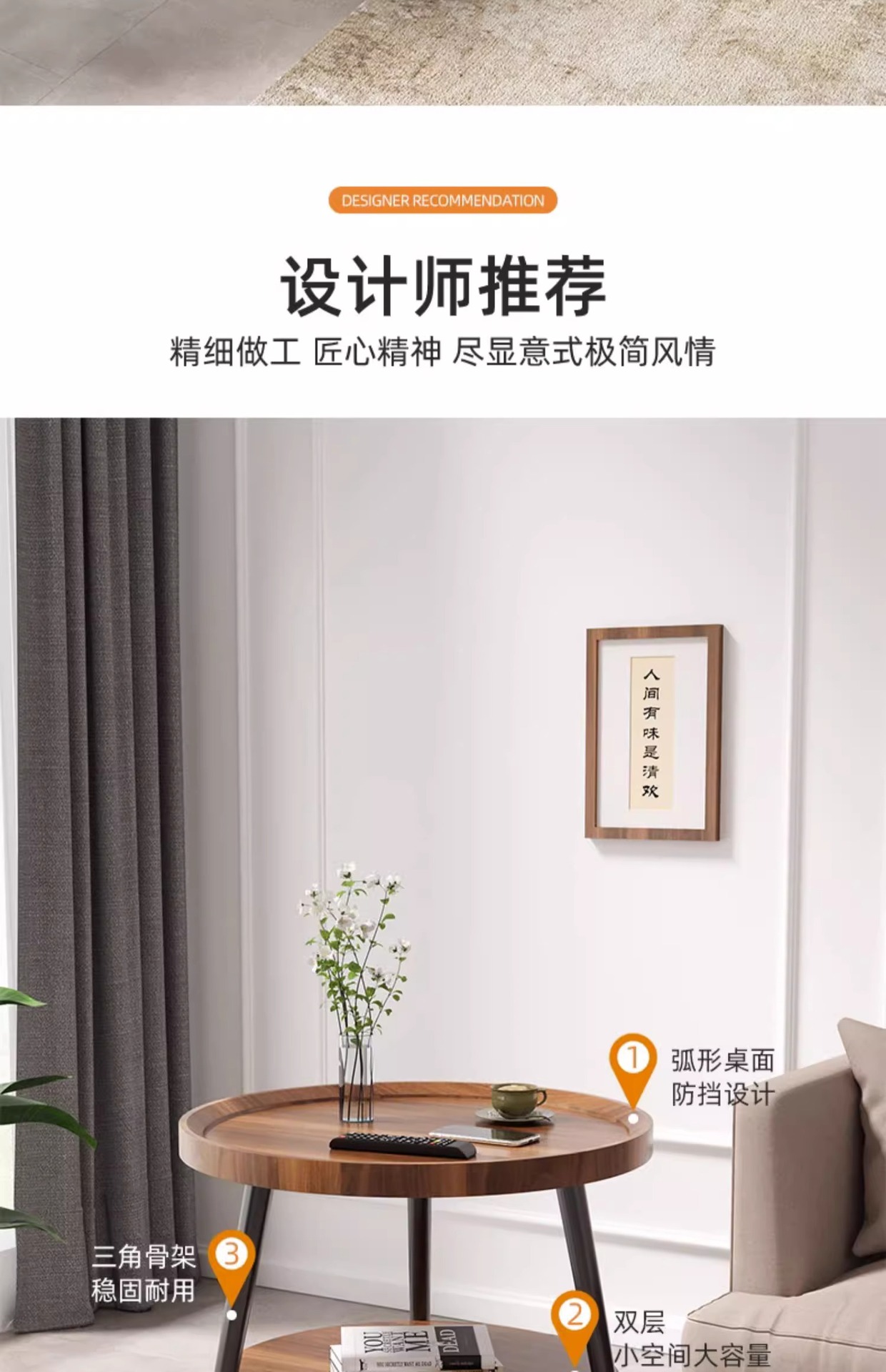 40cm floor-standing double-decker storage unit [walnut color] with metal iron legs
