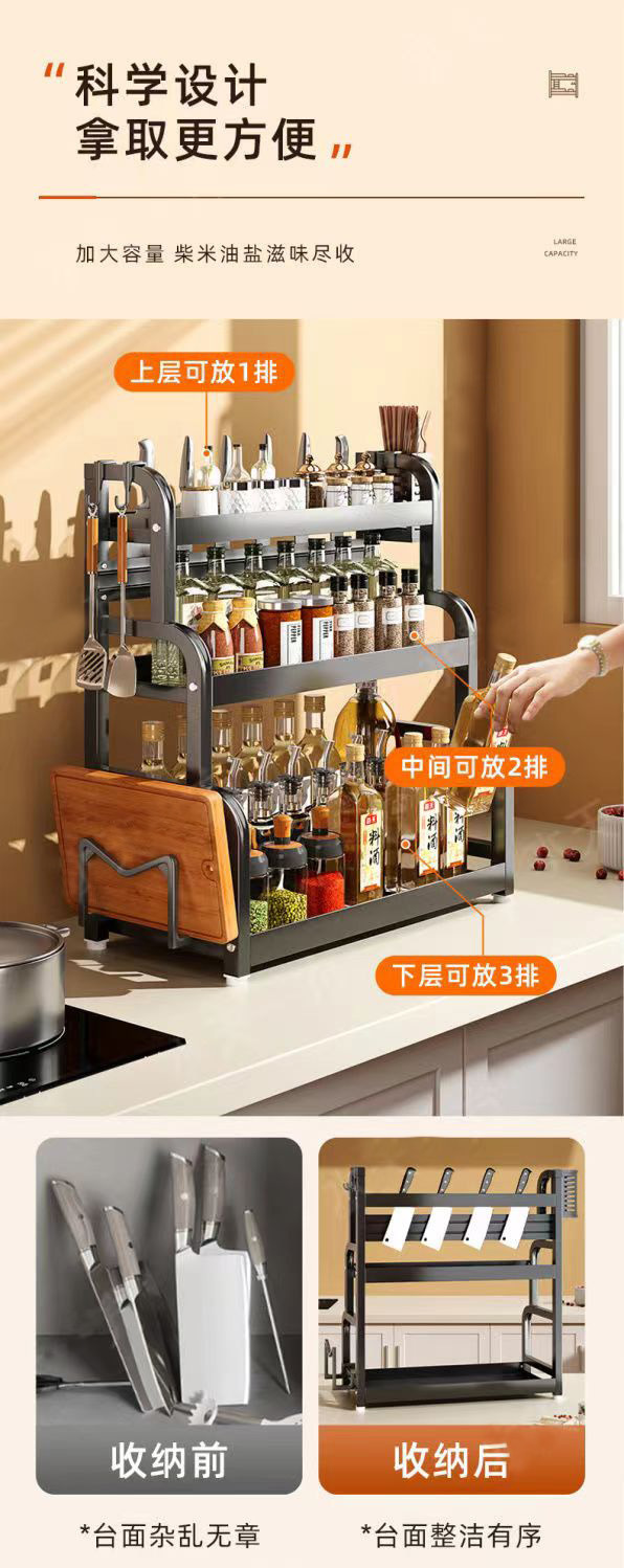50cm gun gray three-layer chopstick canister + chopping board rack + knife holder + hook 4