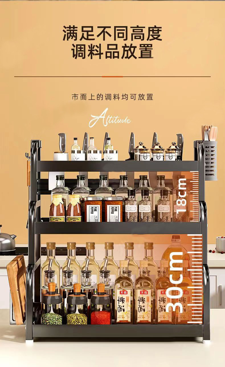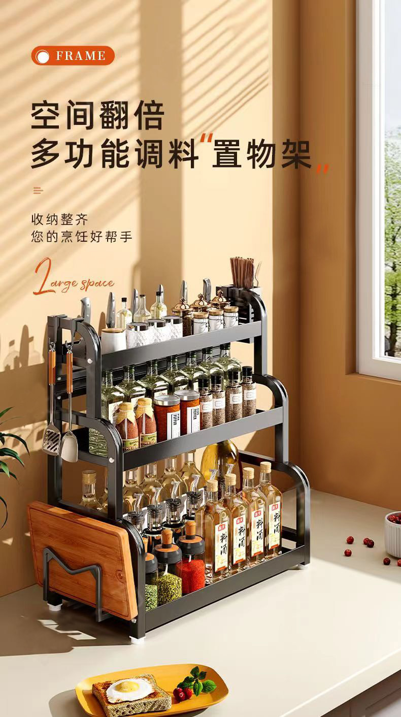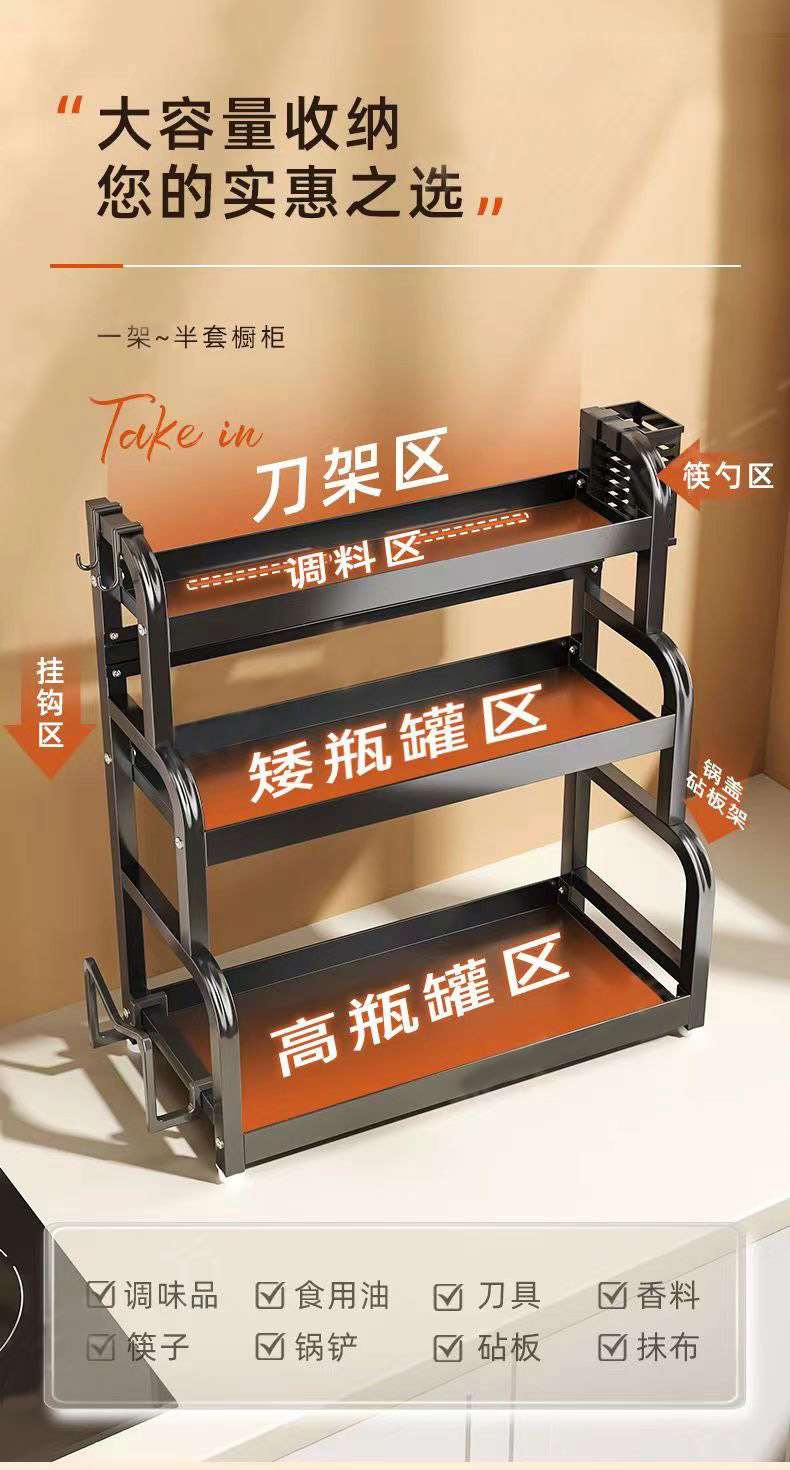 40cm gun gray three-layer chopstick canister + chopping board rack + knife holder + hook 4