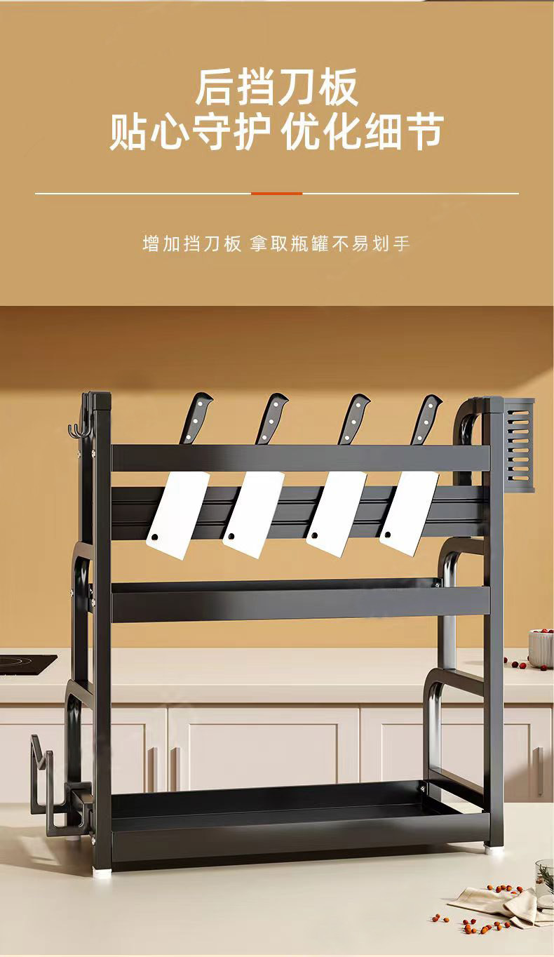 50cm black three-layer chopstick canister + chopping board rack + knife holder + hook 4
