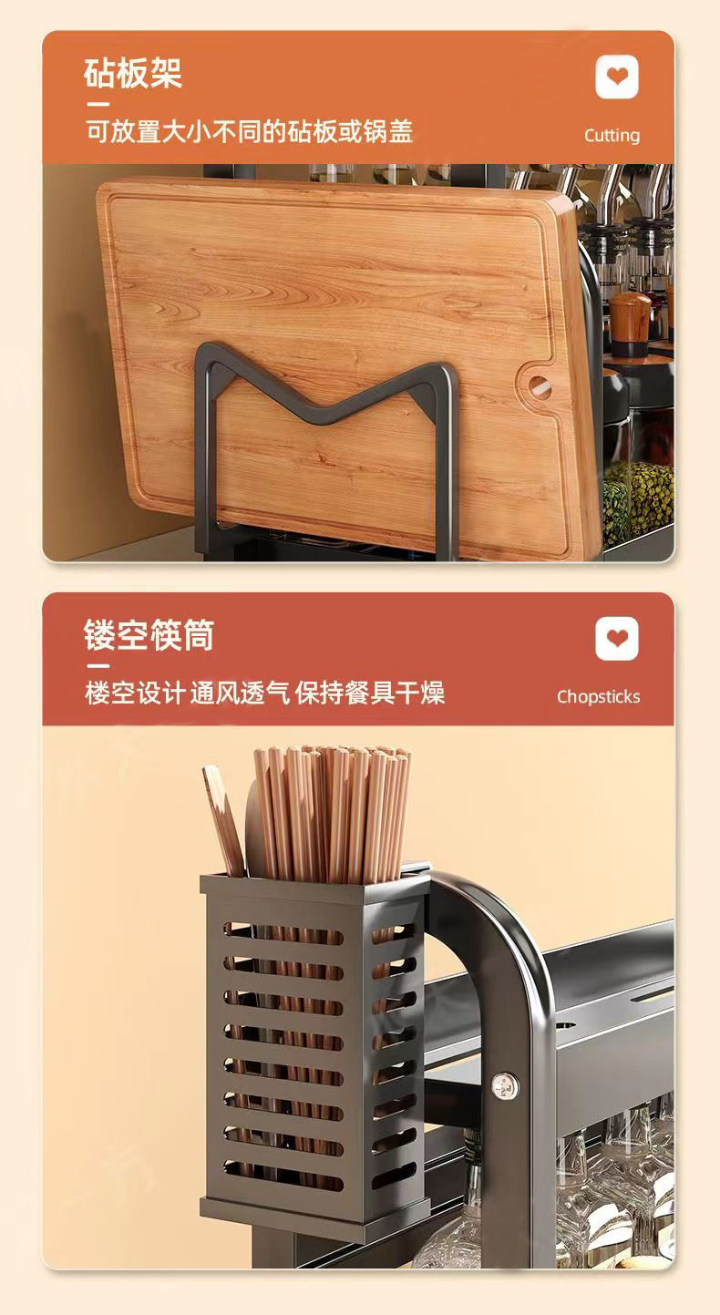40cm gun gray double-layer chopstick canister + chopping board rack + knife holder + hook 4