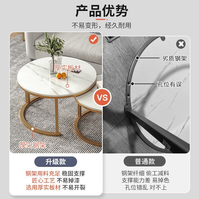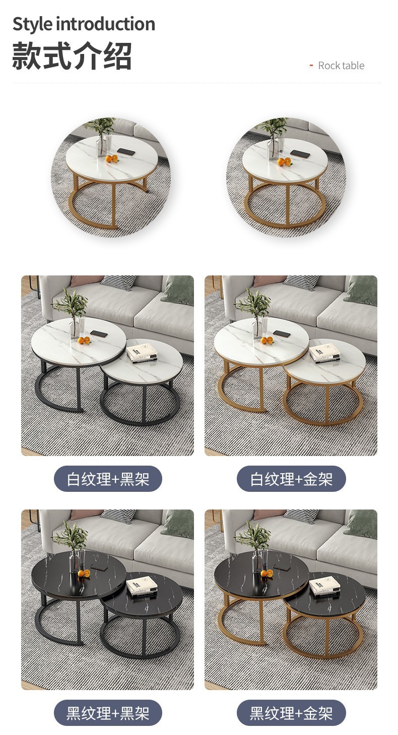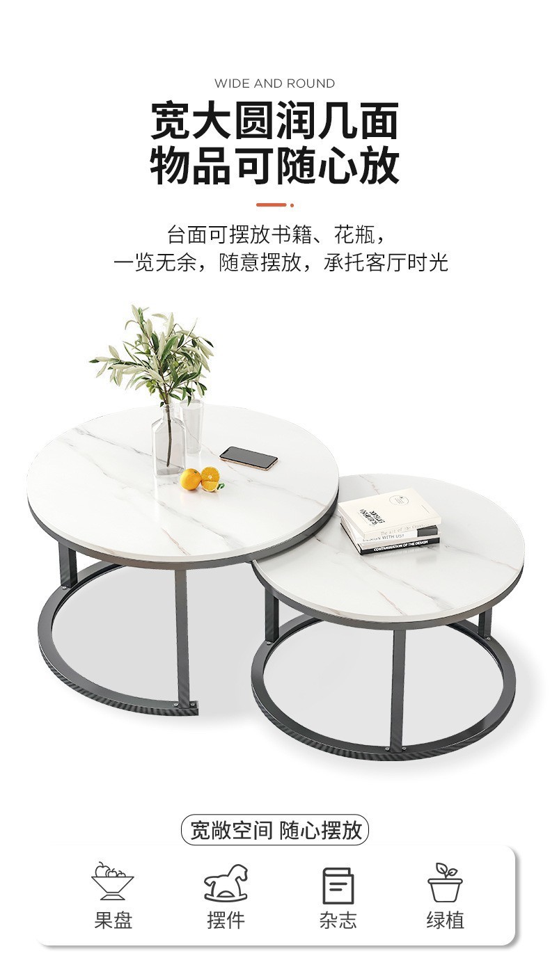 white marble pattern + white marble pattern (metal frame) combination 70 round +50 round