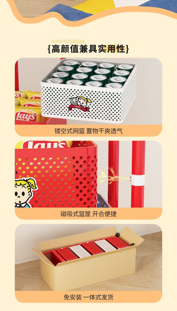 square frame [3 layers] magnetic removable rotating mesh basket
