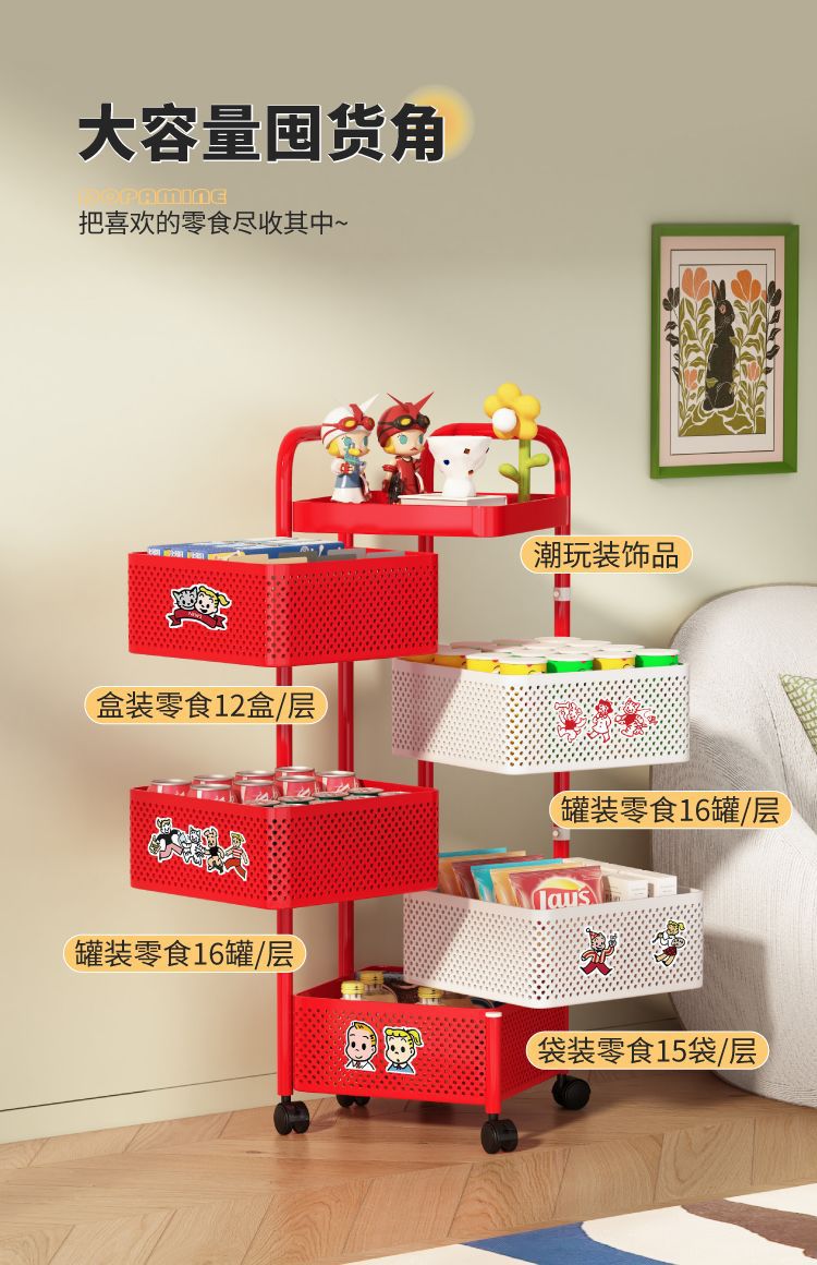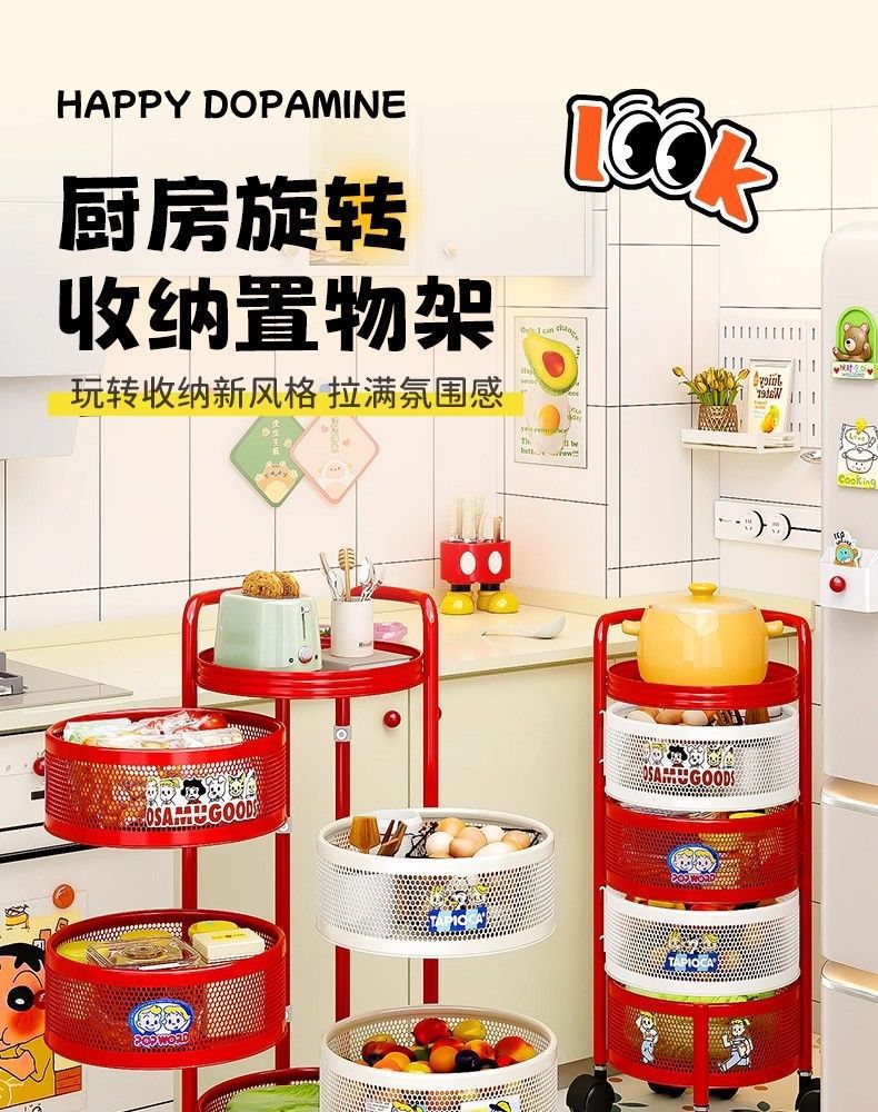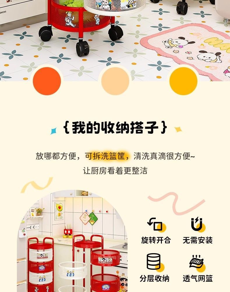 round frame [4 layers] magnetic removable rotating mesh basket