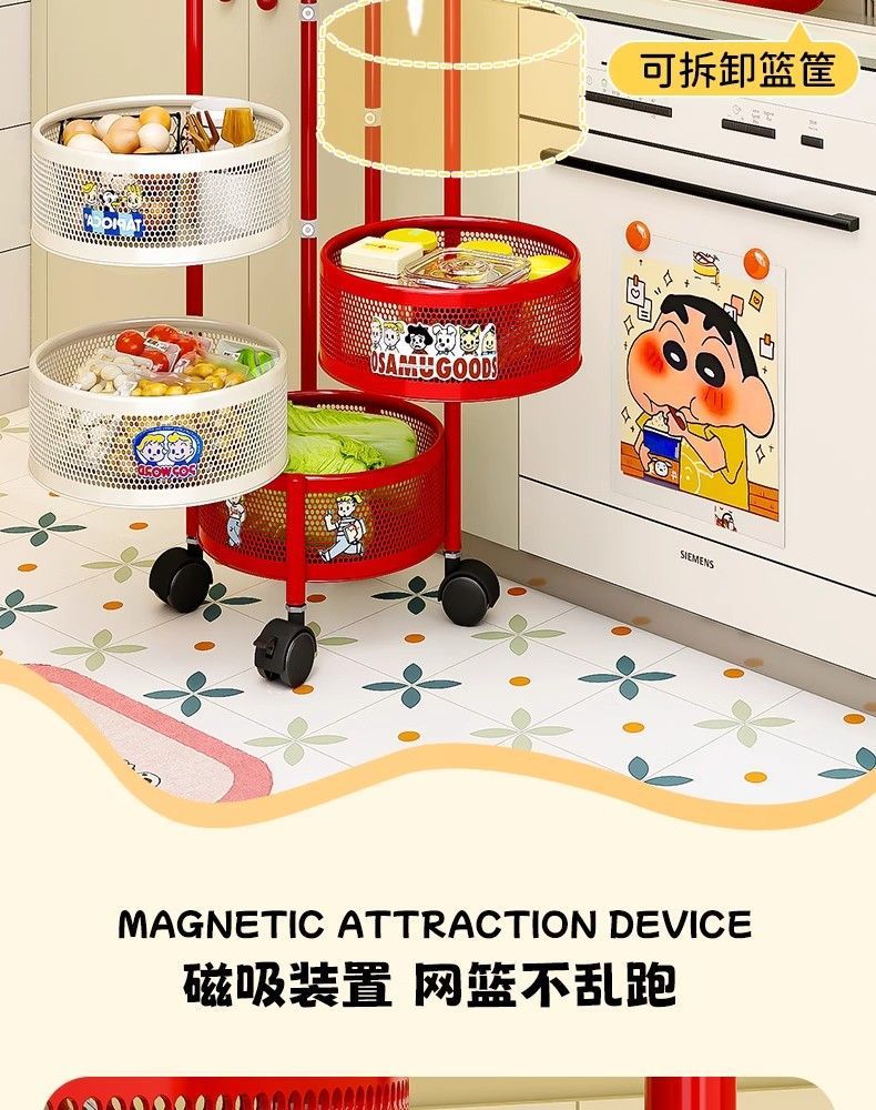 round frame [3 layers] magnetic removable rotating mesh basket