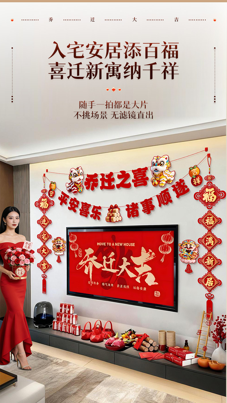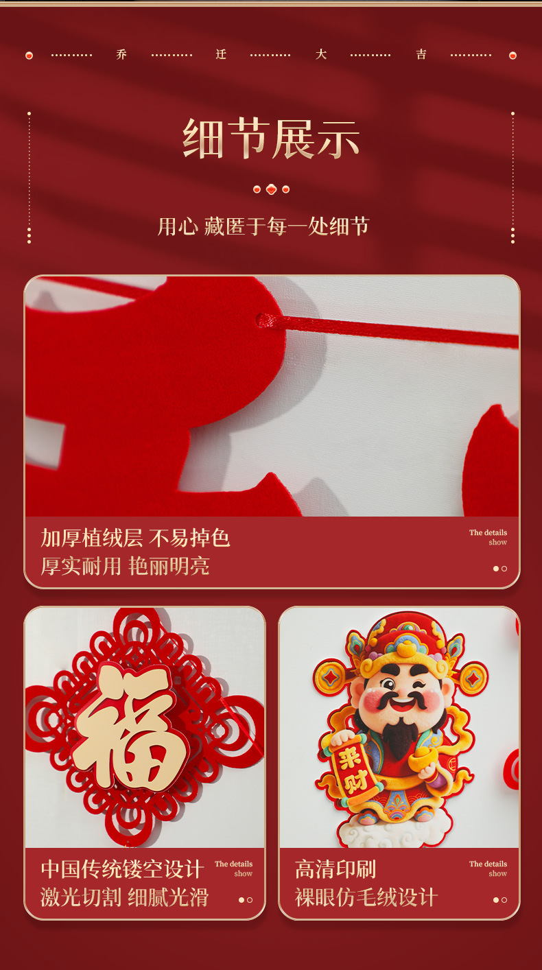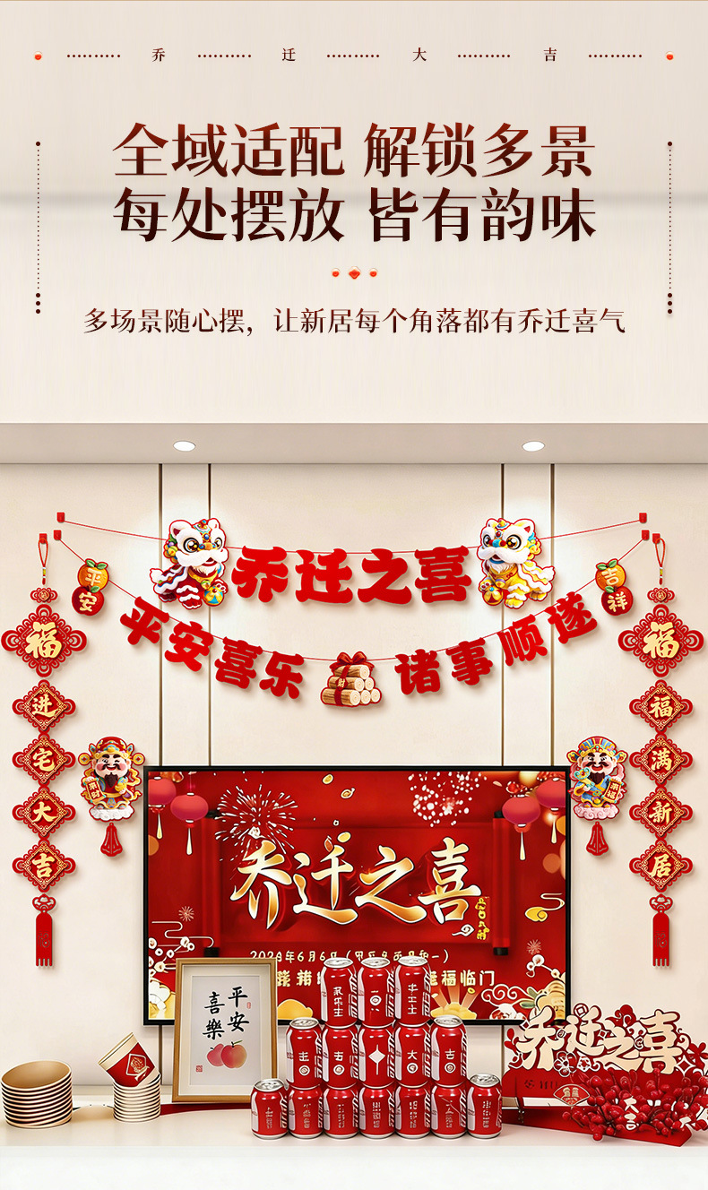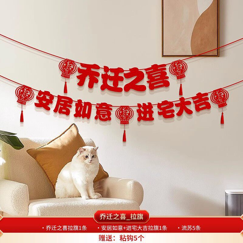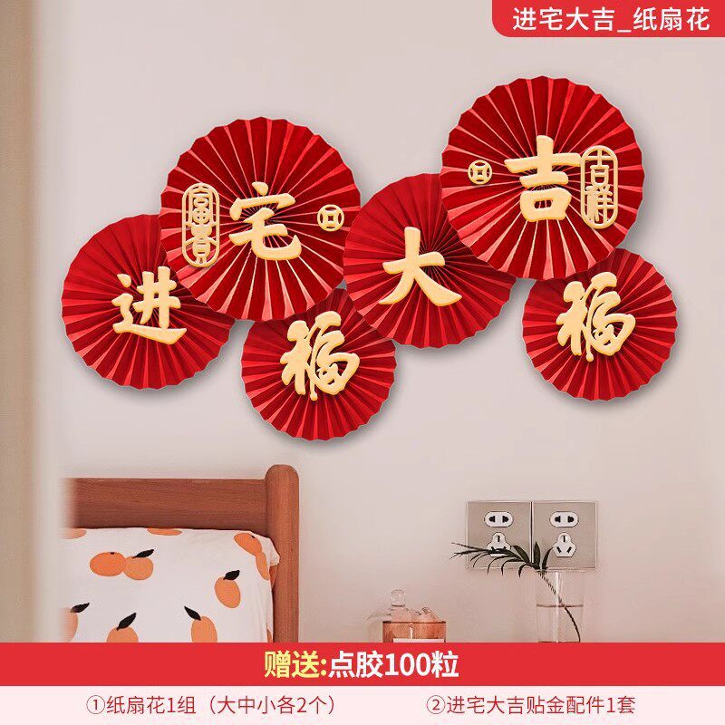 house-to-house hanging [1 pair] + housewarming hanging flag [2 pieces] + god of wealth wall stickers [1 pair]]