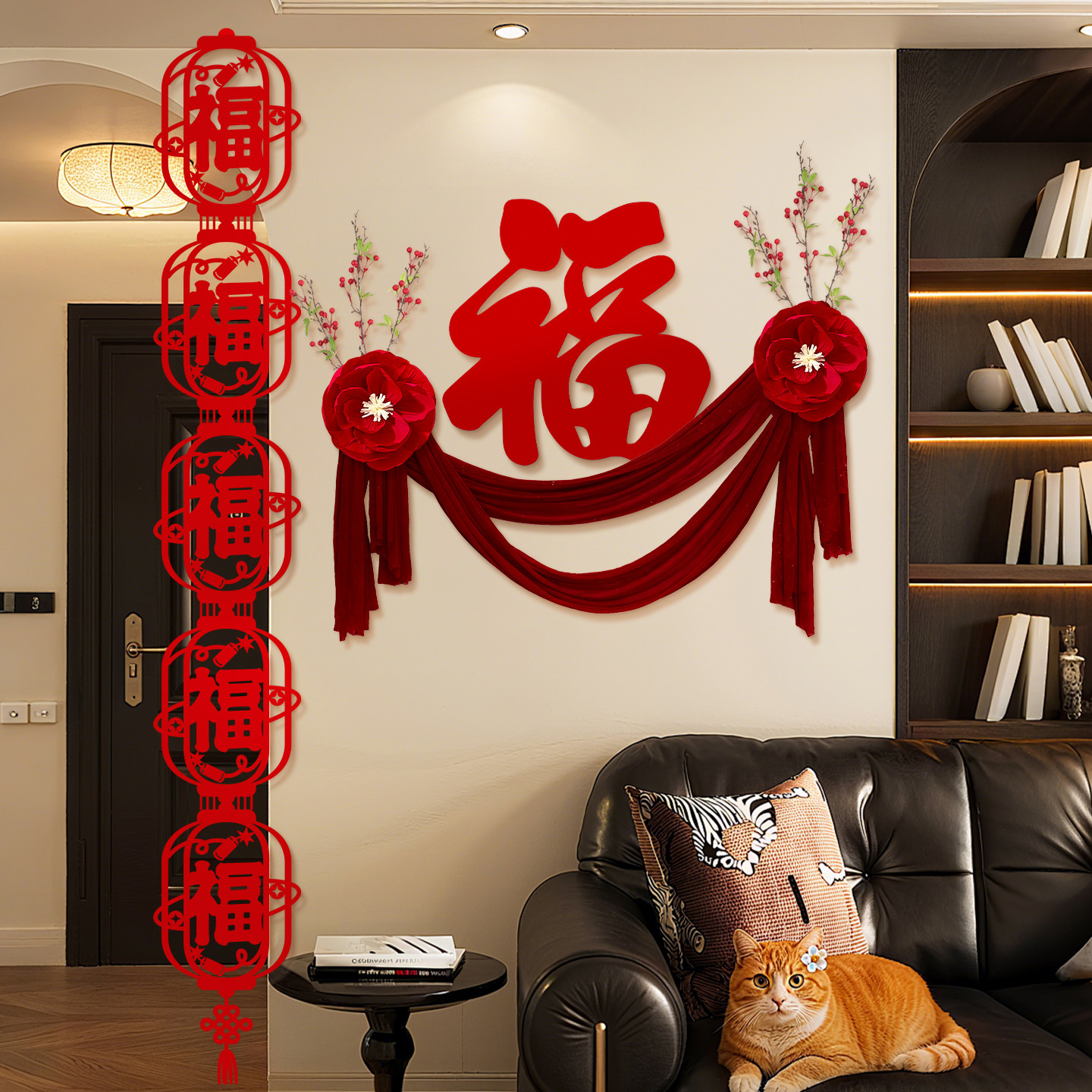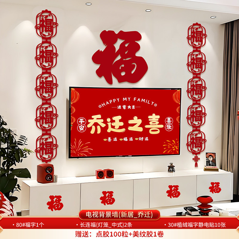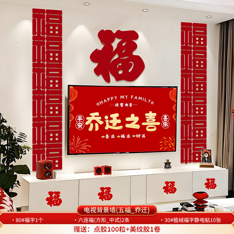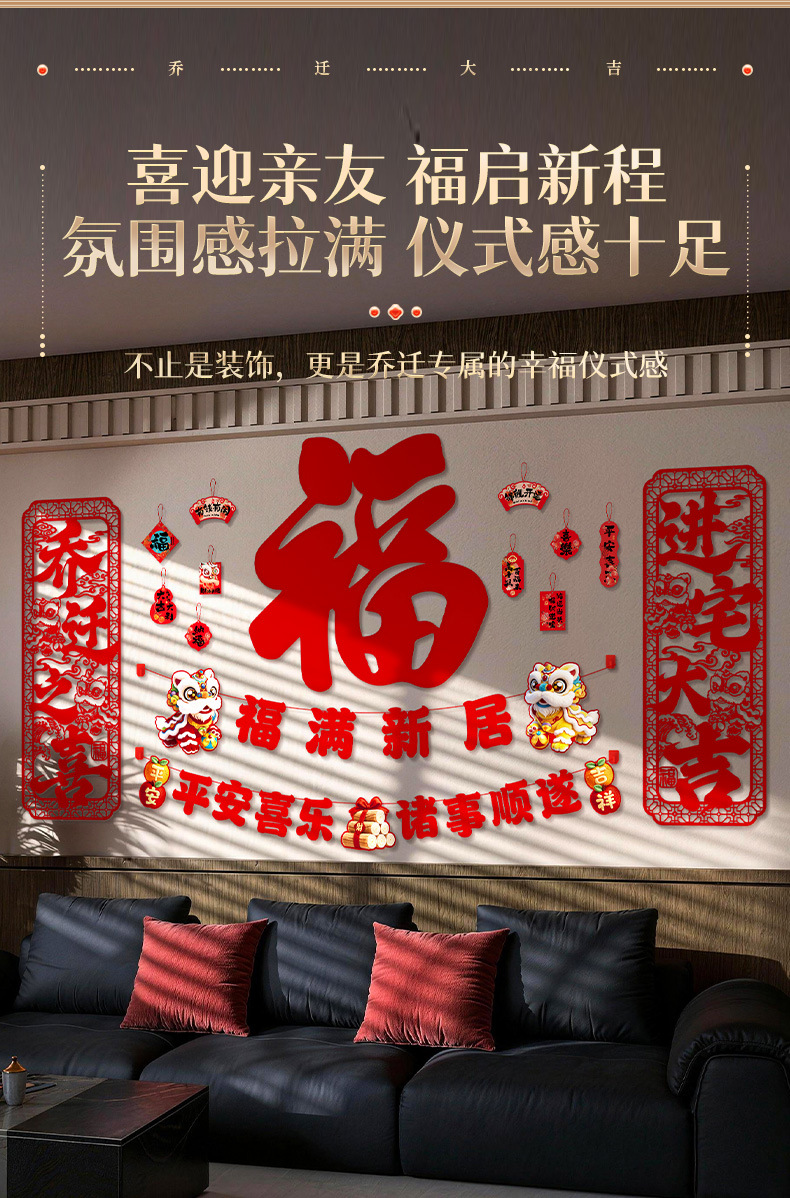 wufu couplet [1 pair] + new home hanging flag [2 pieces] + wall sticker with fu character [1 piece]]