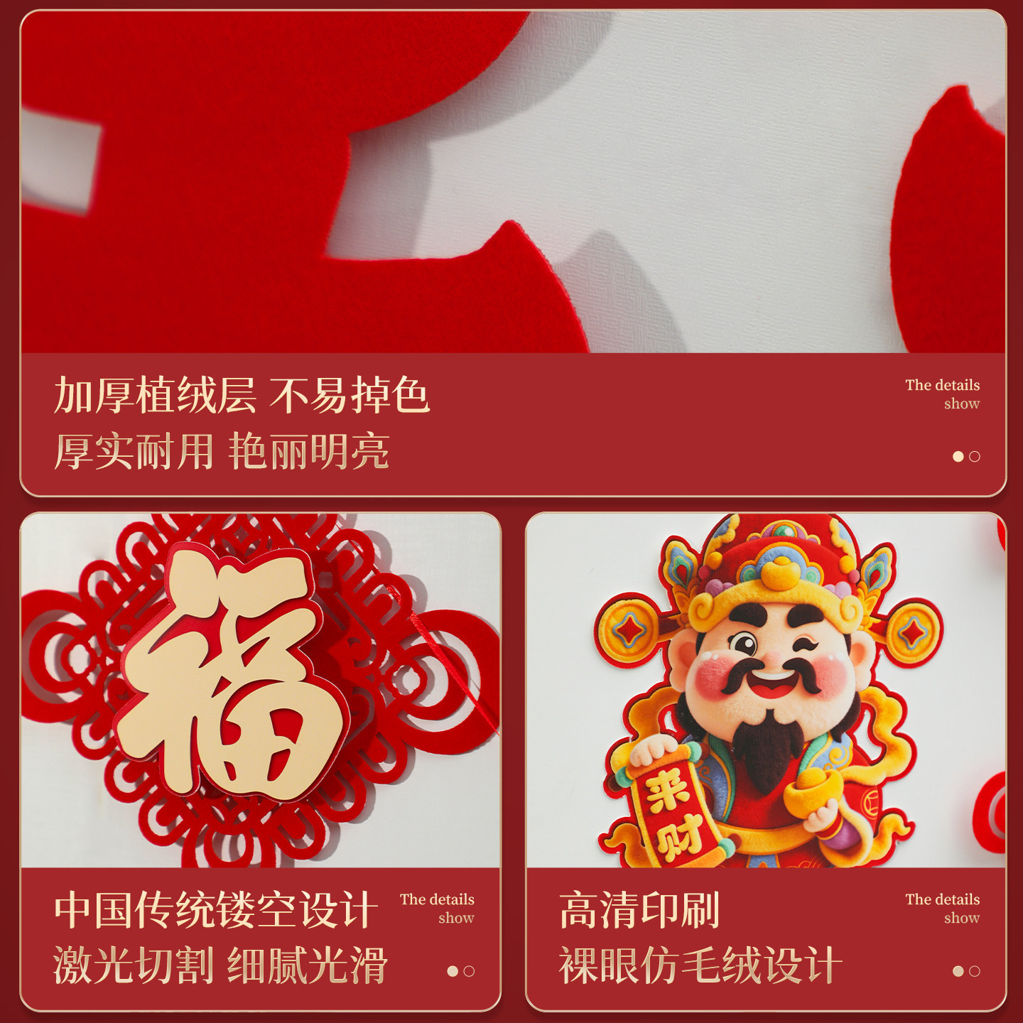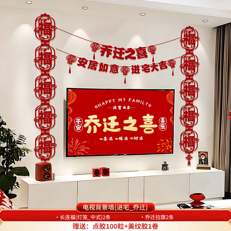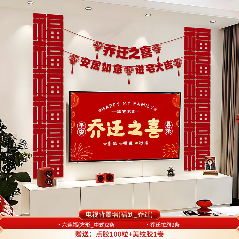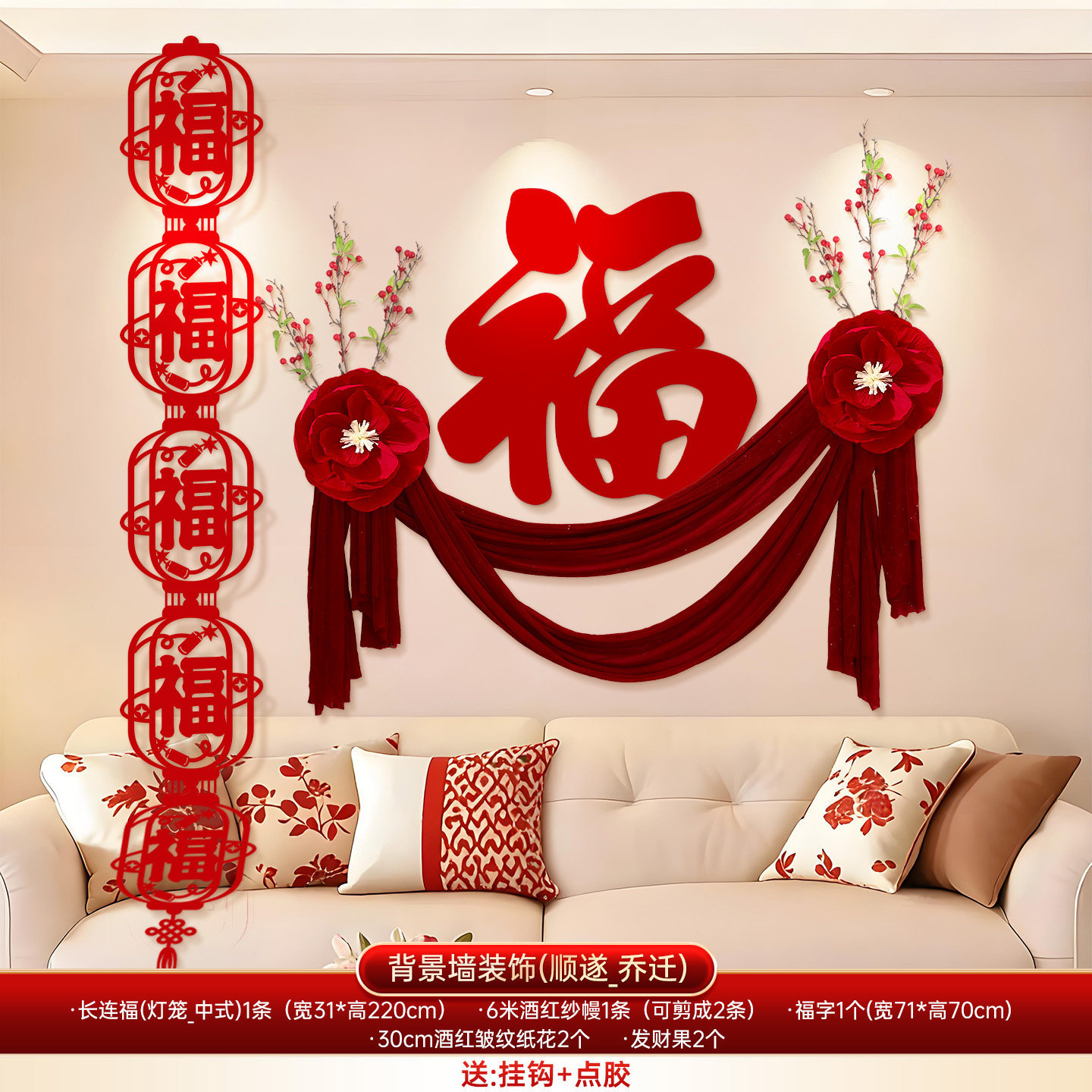 wufu couplet [1 pair] + new home hanging flag [2 pieces] + wall sticker with fu character [1 piece]]