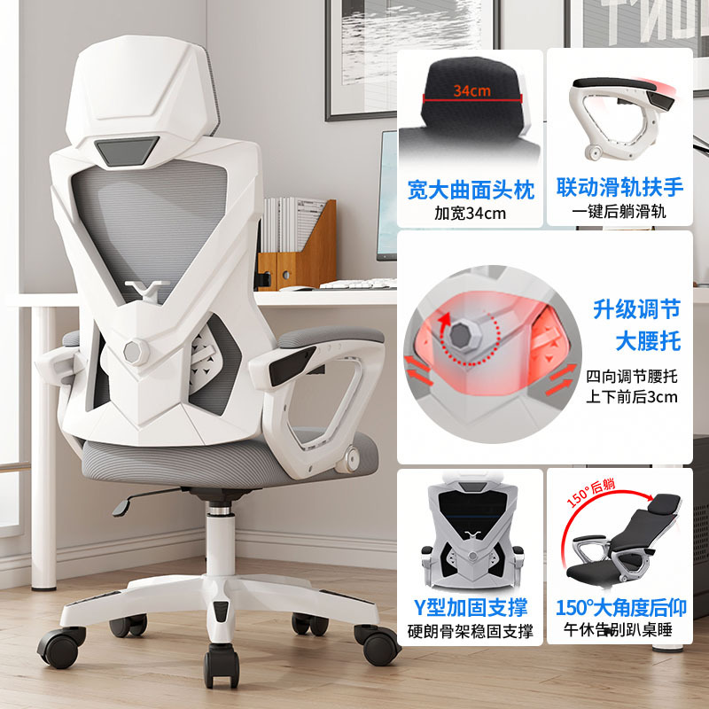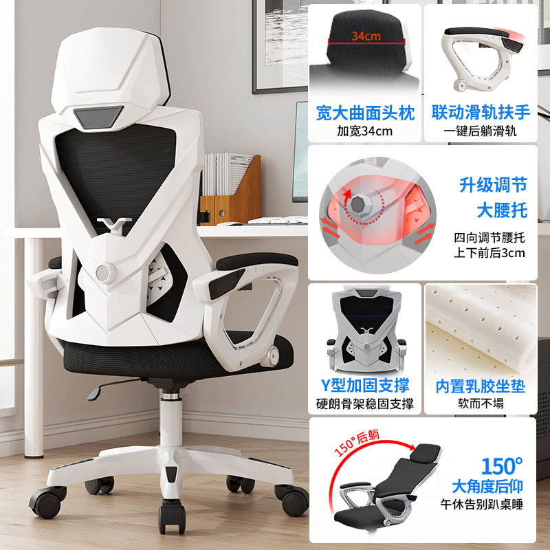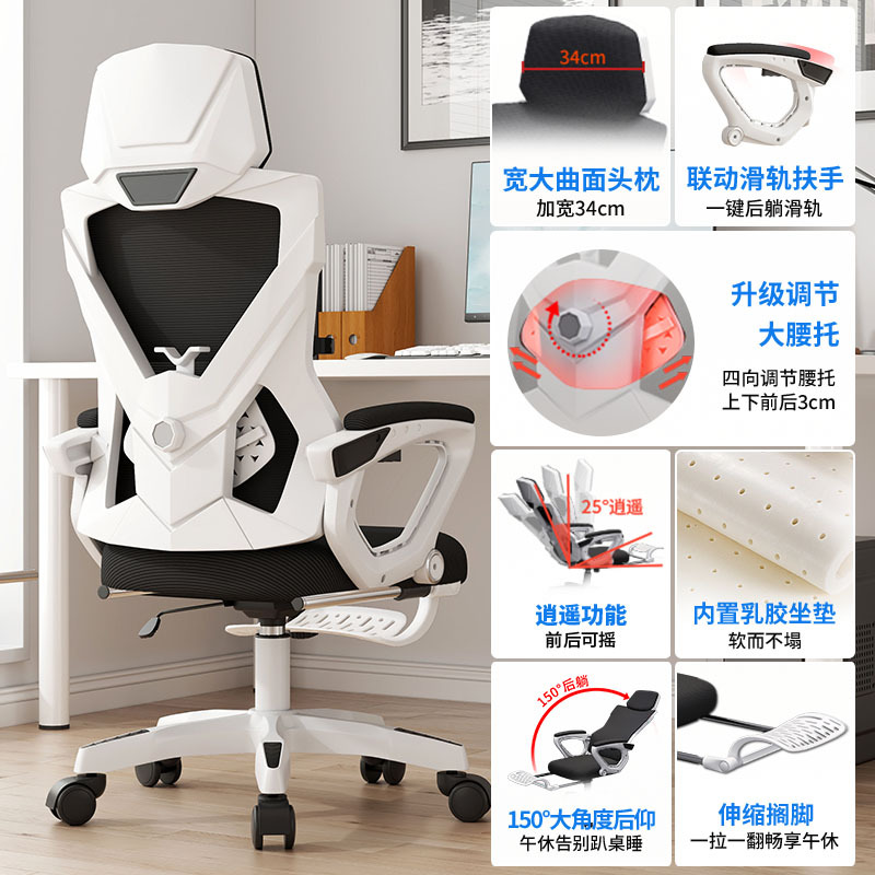 white frame black net + headrest + xiaoyao-backrest reclining