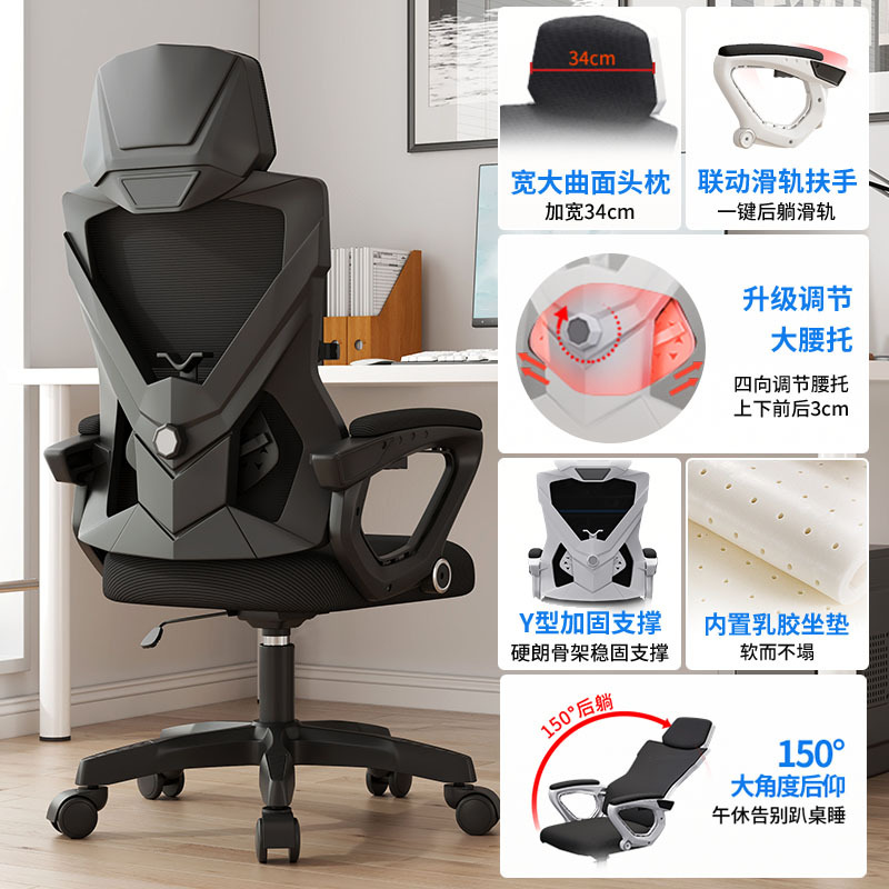 black frame black net + headrest + xiaoyao-backrest reclining
