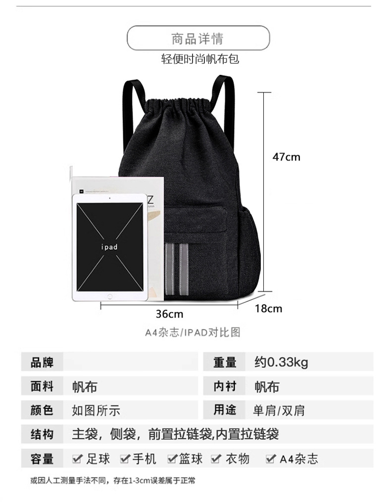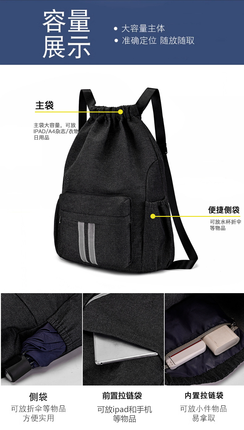 large capacity men's and women's sports canvas shoulders travel bag gym bag training backpack drawstring bag drawstring bag basketball bag