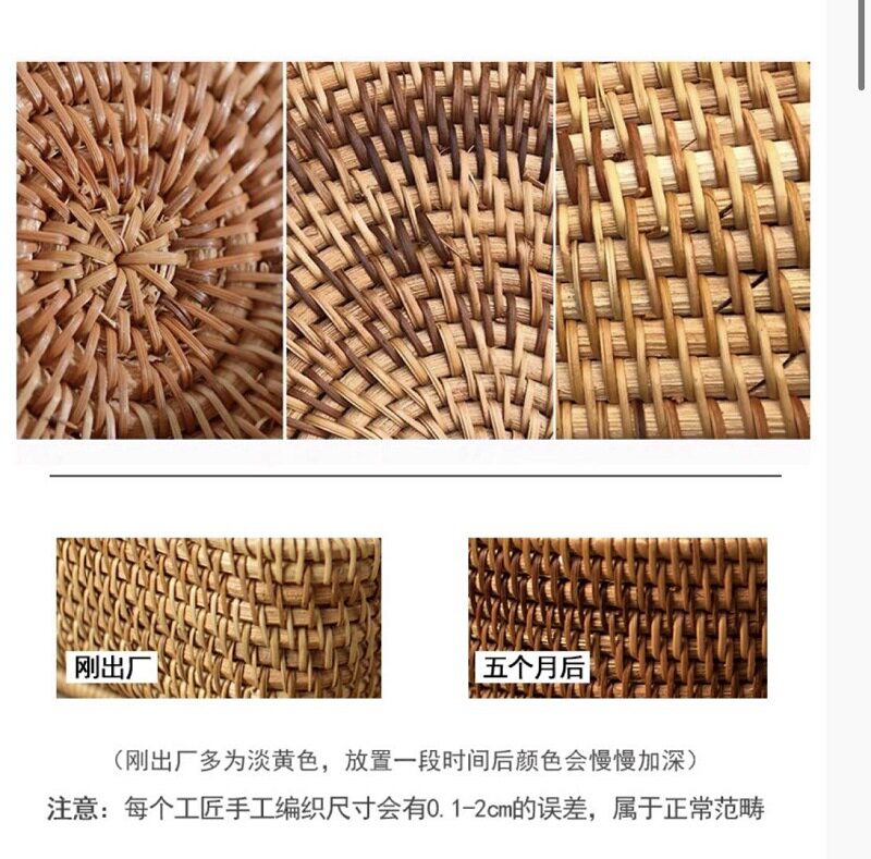 Adopting wild vines, the forest route is steep and dangerous, and it can only be collected and transported by manual labor. The basketry handcrafted fruit basket goes through 16 processes such as collecting vines, selecting vines, cutting vines, beating vines, weaving, shaping, trimming, polishing, drying, and installing accessories. It may have color inconsistency (the color of the vines is given by nature, and the new goods are lighter, which will become darker over time), and the vines may have different thicknesses (it is inevitable that the vines will have different thicknesses when manually trimming the vines). There is an interface (the length of the vines is limited and all need to be connected).