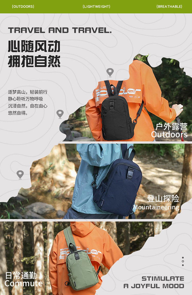 outdoor sports multi-functional waterproof small backpack lightweight textured one-shoulder bag small hiking hiking backpack chest bag