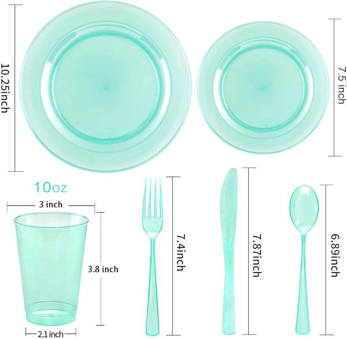 Dimensions: Cup 10oz, 7.5 inch small plate 19cm, 10.25 inch large plate 26cm, knife 20cm, fork 18.5cm, spoon 17.5cm