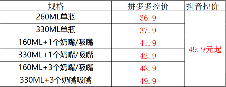Please adhere to the price control guidelines for the other platforms as follows, or your order may not be able to be shipped in time. Please be informed.Please list the items on the Pinduoduo platform at the following prices: